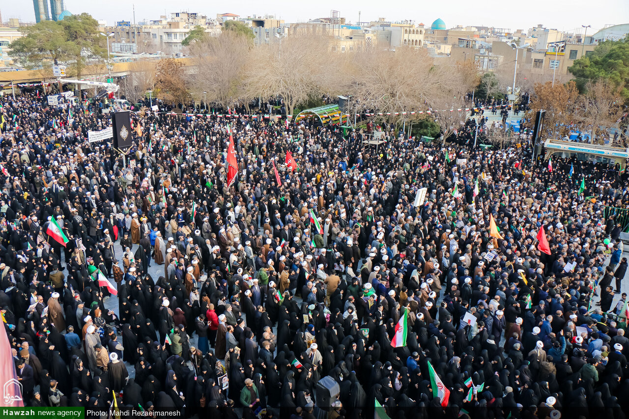 حوزه/ راهپیمایی مردم شهر قم در یوم الله ۲۲ دی بر علیه اقدامات تروریستی اغتشاشگران و عوامل خارجی در نقاط مختف ایران، بصورت همزمان در سراسر کشور برگزار شد.