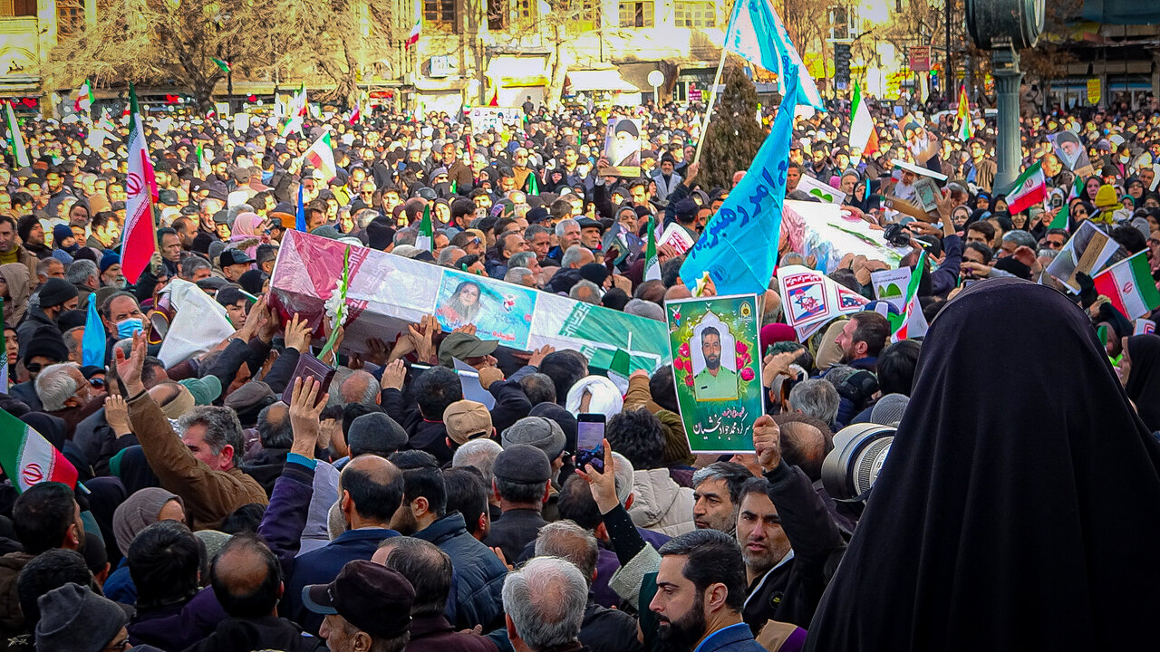 پیکر زوج همدانی که توسط اغتشاشگران شهید شدند تشییع میشود