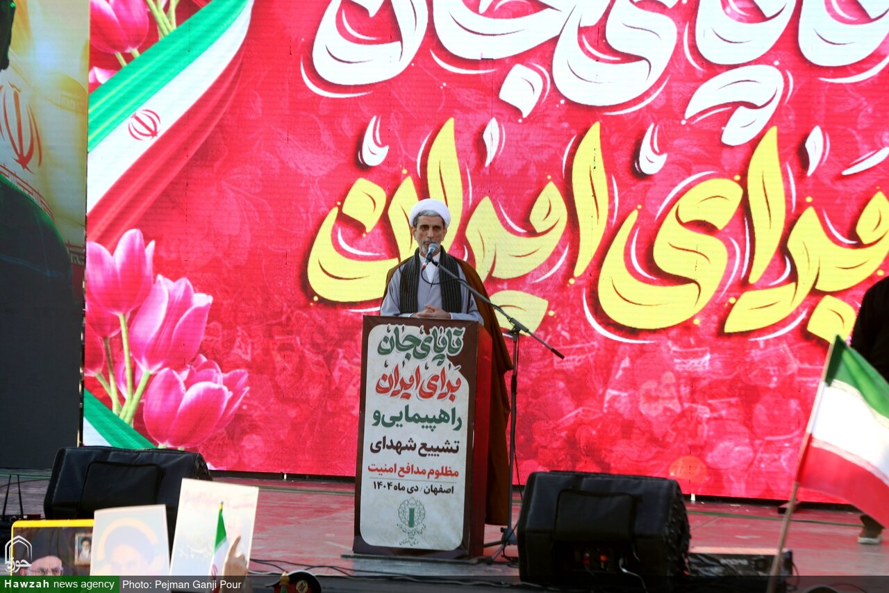 مردم اصفهان با حضوری پر شور و حماسی درمیدان بزرگمهر این شهر تجمع کردند و تعدادی از شهدای مدافع امنیت اغتشاشات اخیر در اصفهان را با شکوه و عظمتی وصف نا شدنی تا گلستان شهدای این شهر تشییع شدند.