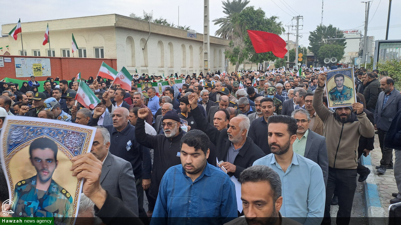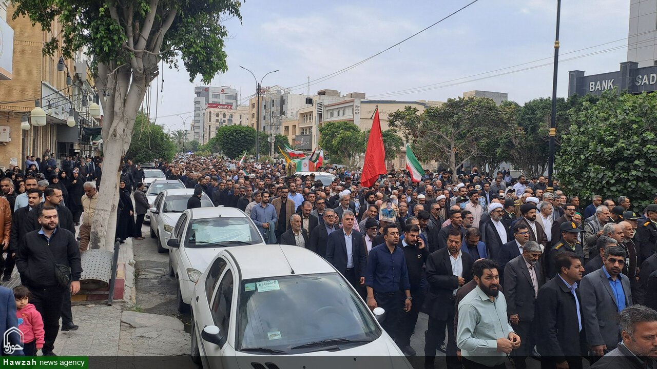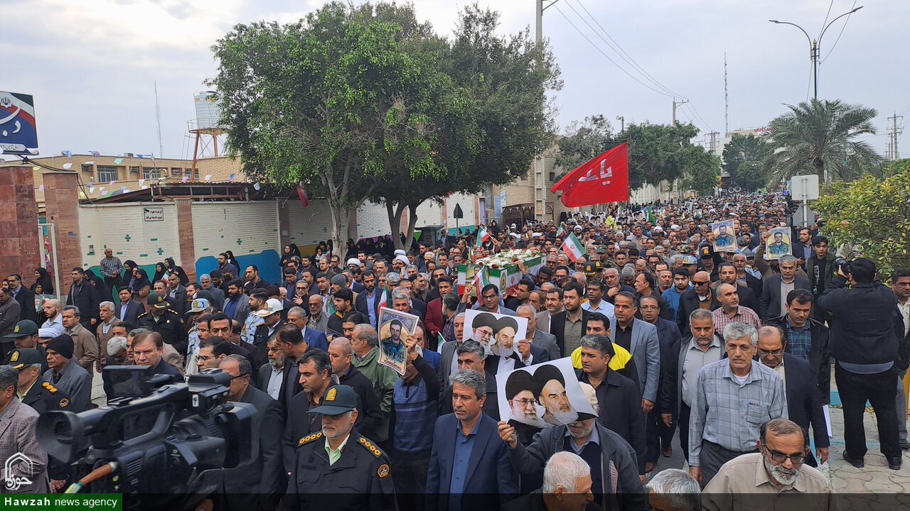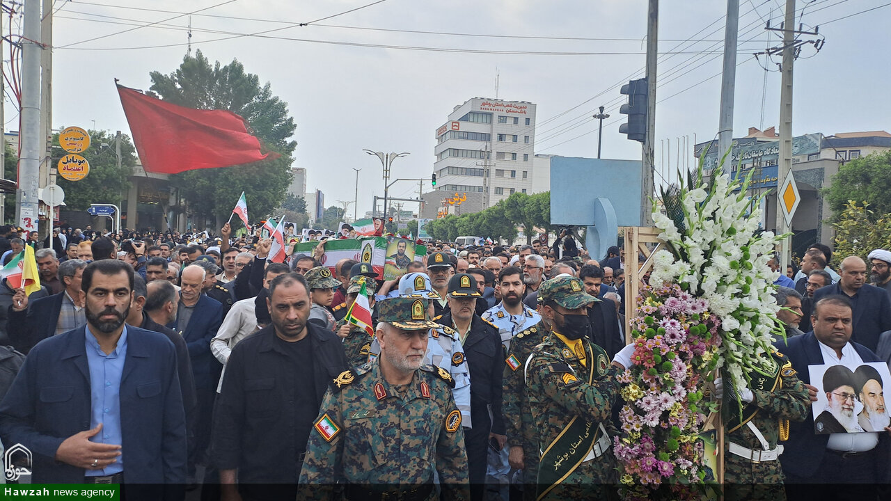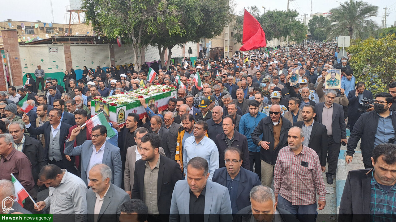 حوزه/ آیین تشییع پیکر دومین شهید مدافع امنیت امروز (چهارشنبه ) با حضور اقشار مختلف مردم و مسوولان در آیینی حزن انگیز از مقابل بسیج مرکزی تا میدان قدس بوشهر برگزار شد.