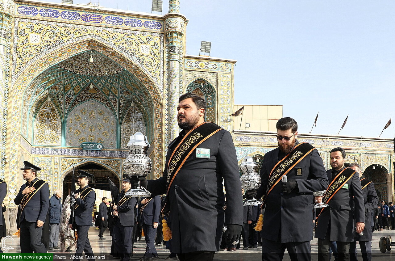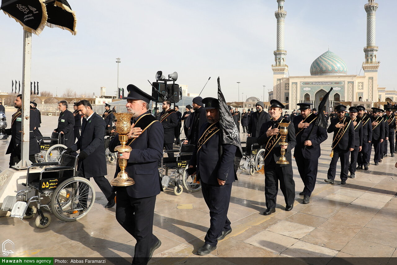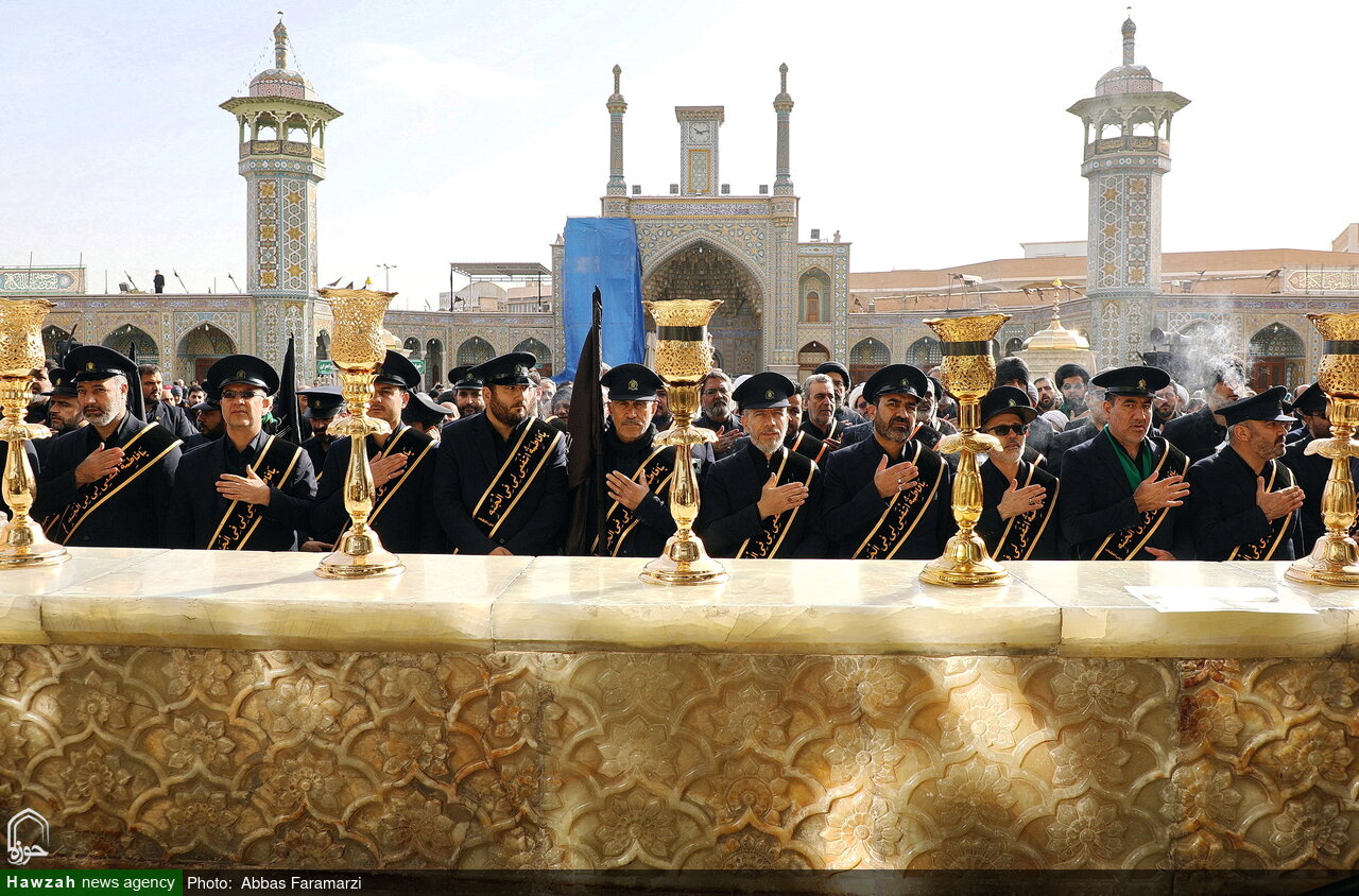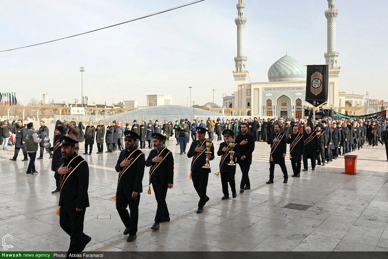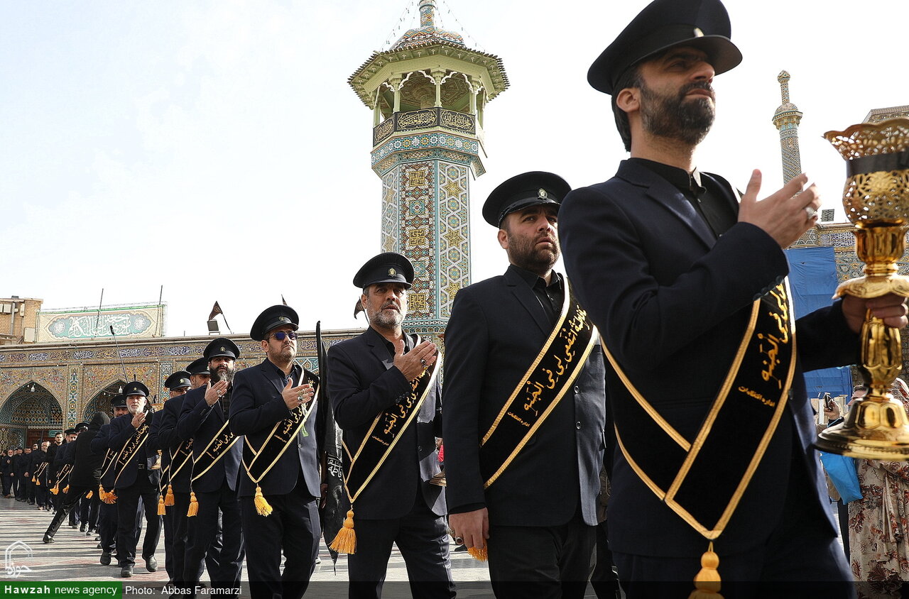 دسته عزای خادمان و زائران حرم بانوی کرامت در سالروز شهادت امام موسی کاظم(ع) امروز صبح از مسجد امام حسن عسکری(ع) به سمت حرم کریمه اهلبیت جضرت معصومه(س) برگزار شد.