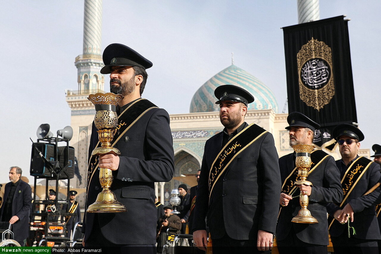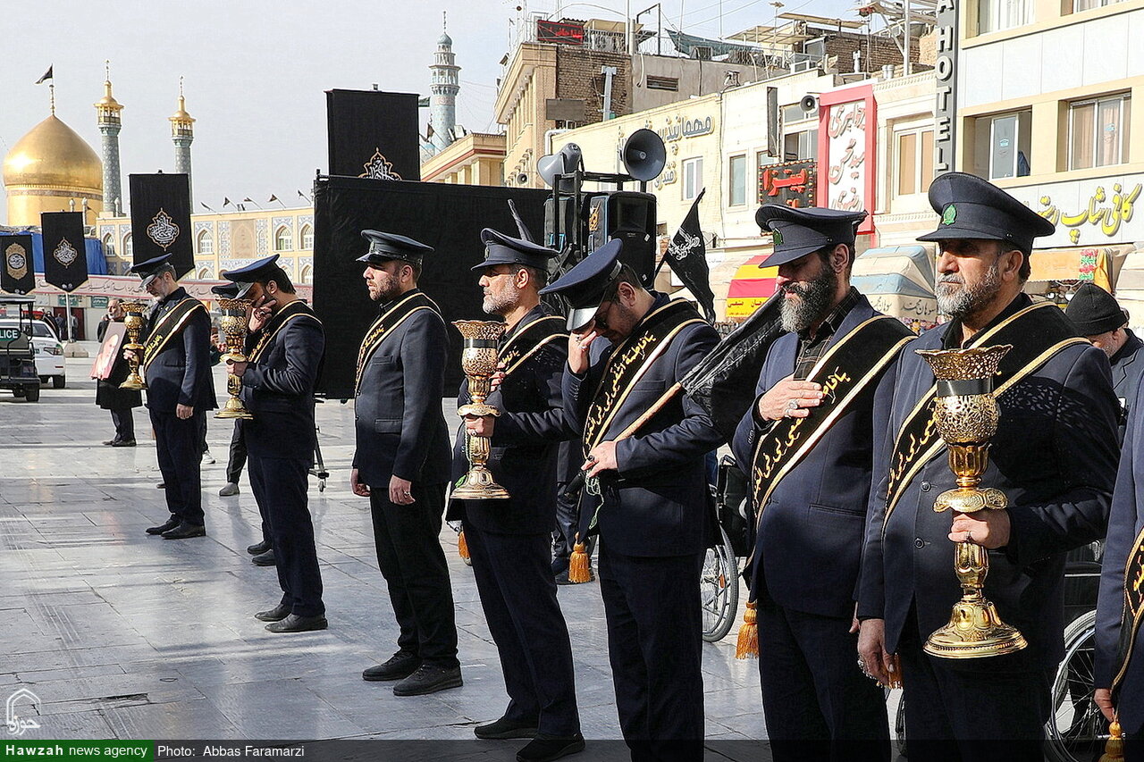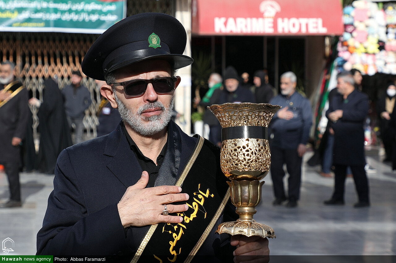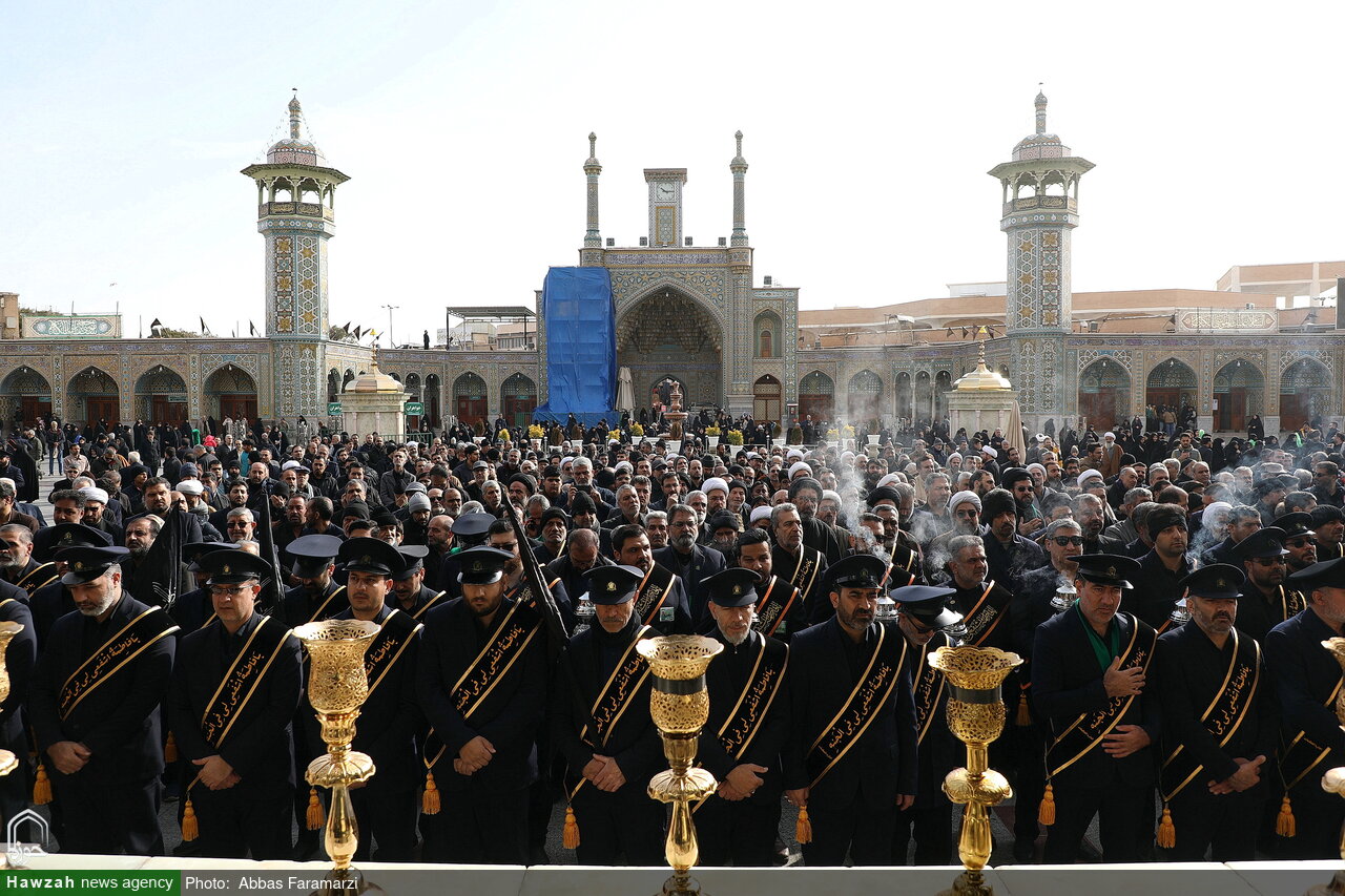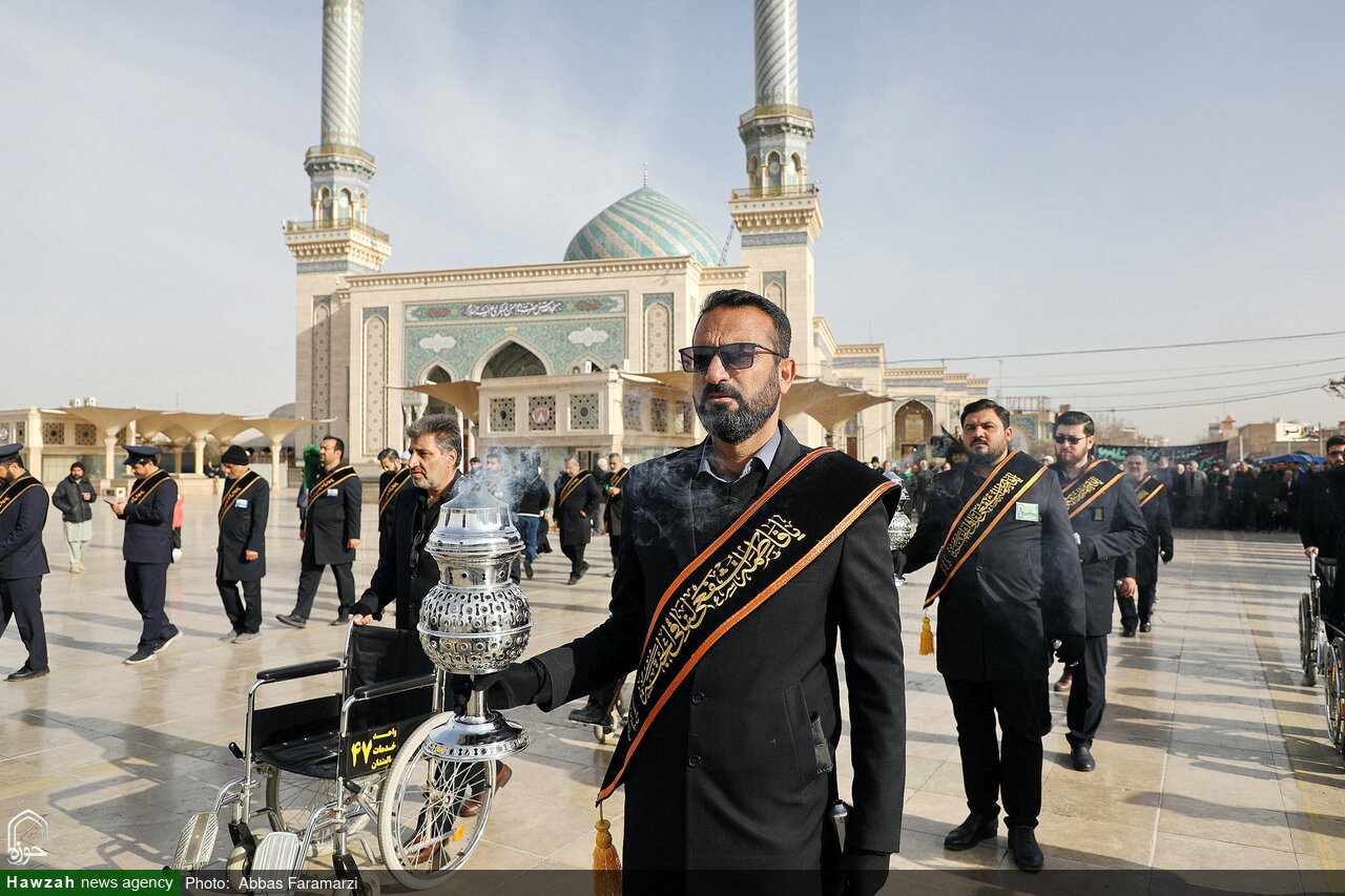 دسته عزای خادمان و زائران حرم بانوی کرامت در سالروز شهادت امام موسی کاظم(ع) امروز صبح از مسجد امام حسن عسکری(ع) به سمت حرم کریمه اهلبیت جضرت معصومه(س) برگزار شد.