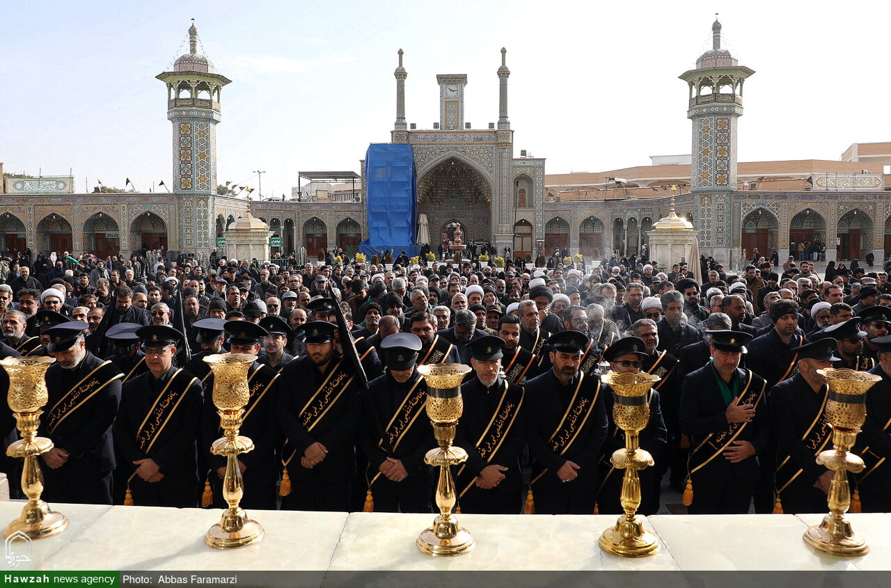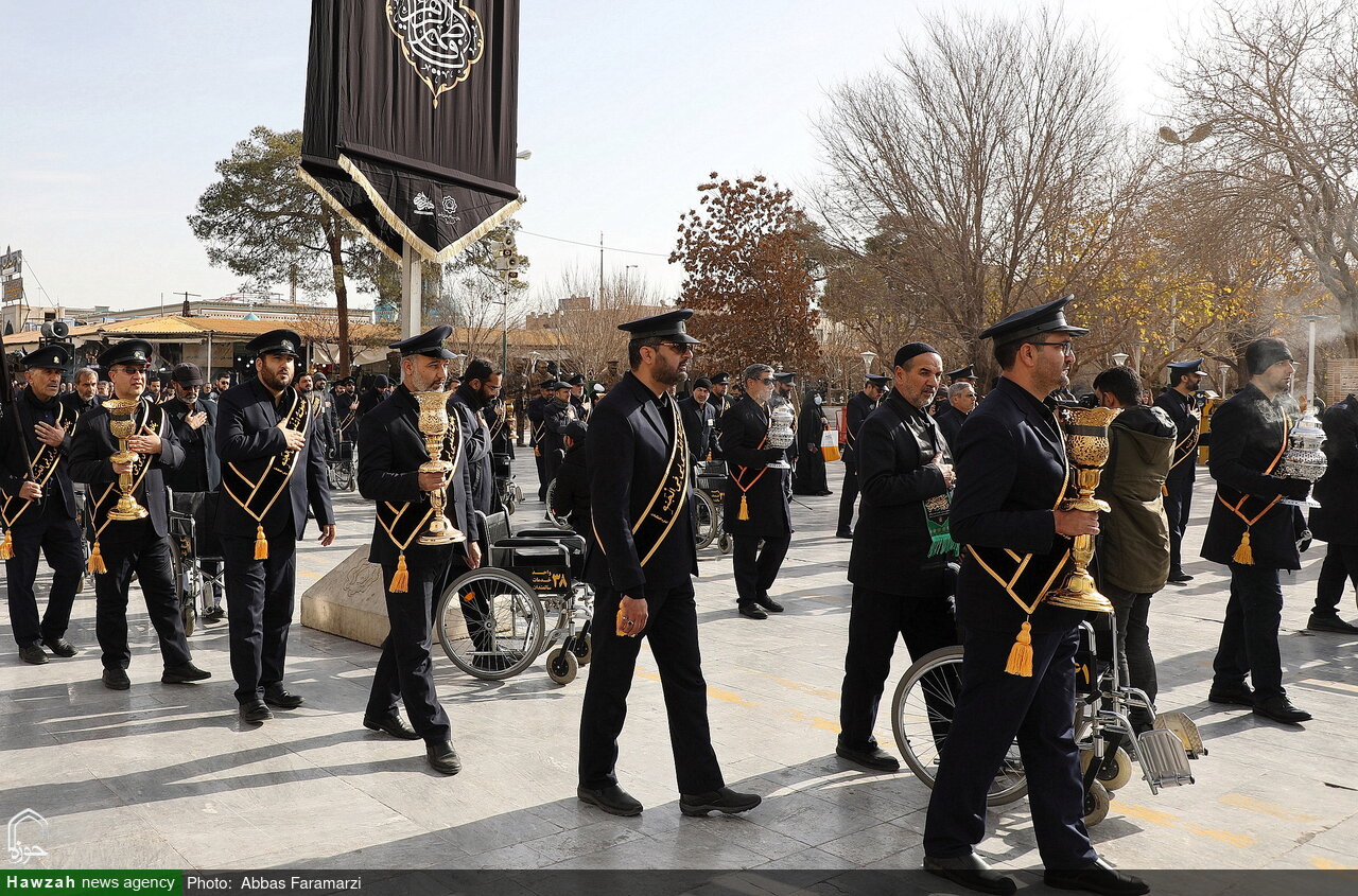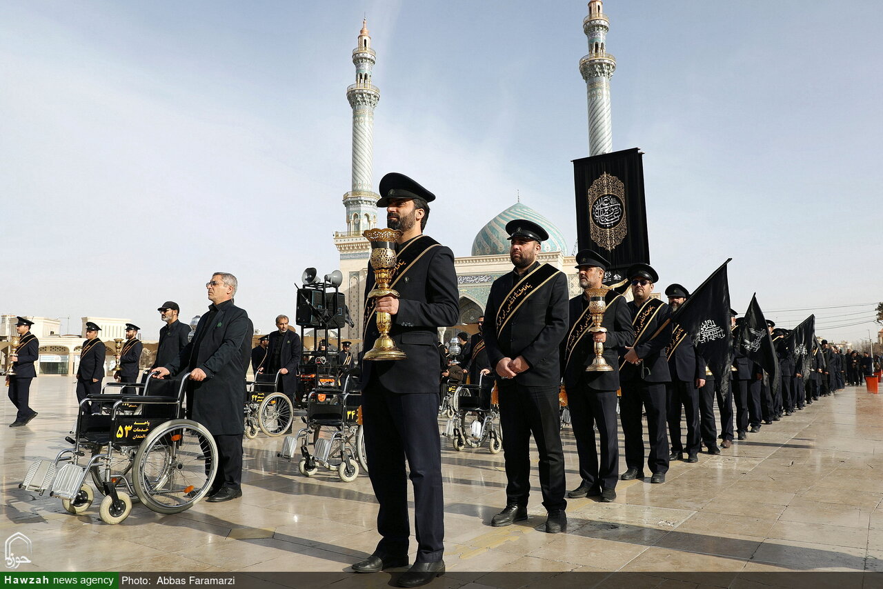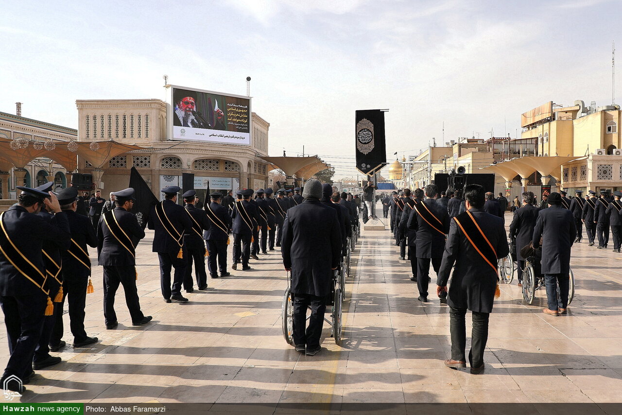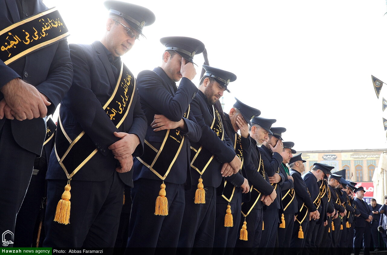 دسته عزای خادمان و زائران حرم بانوی کرامت در سالروز شهادت امام موسی کاظم(ع) امروز صبح از مسجد امام حسن عسکری(ع) به سمت حرم کریمه اهلبیت جضرت معصومه(س) برگزار شد.