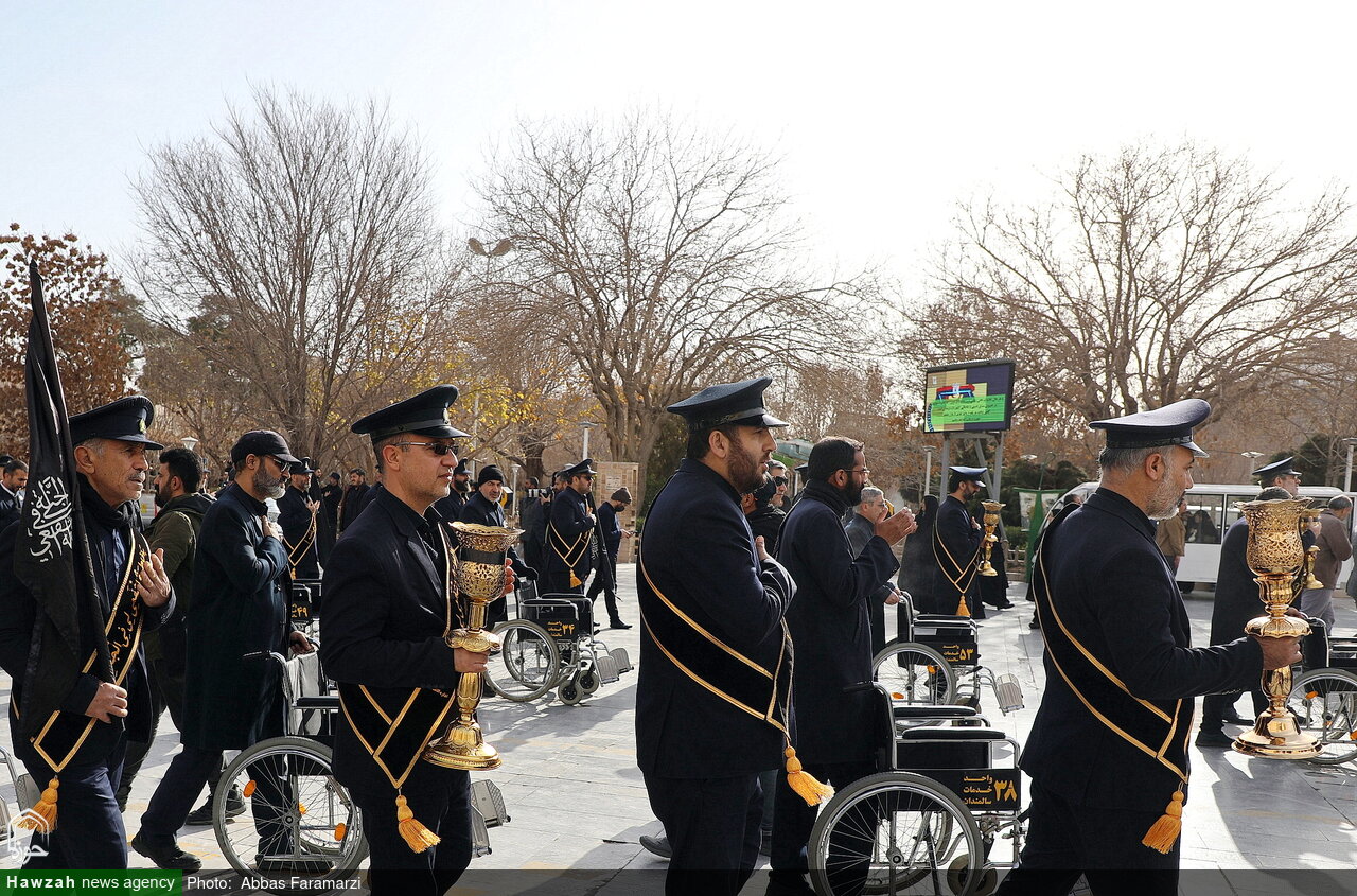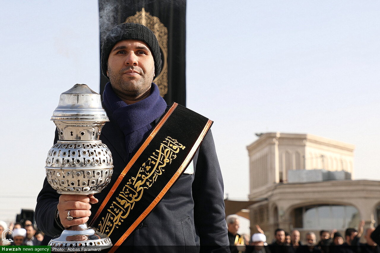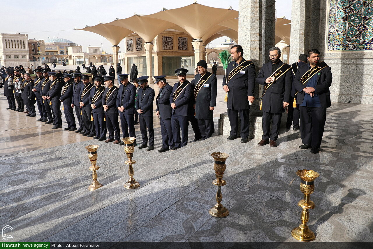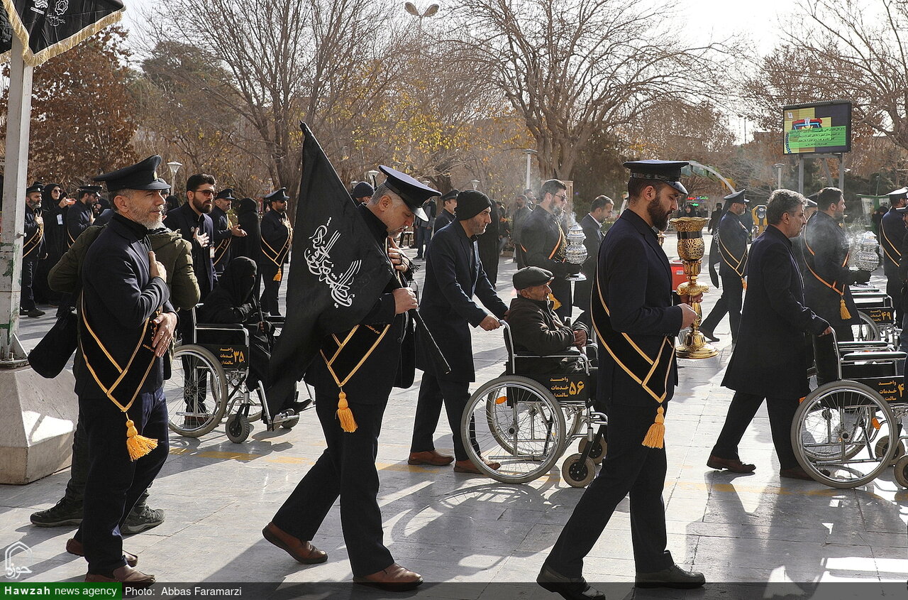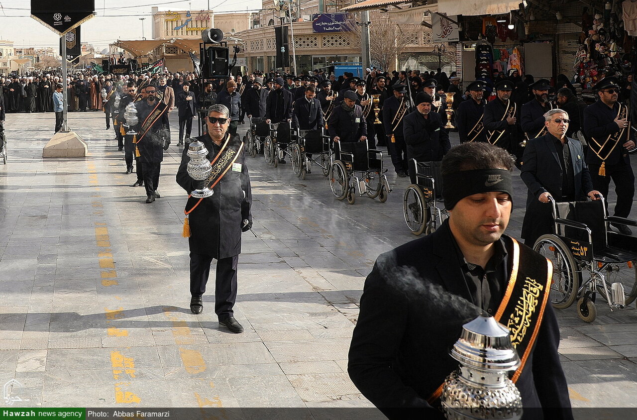 دسته عزای خادمان و زائران حرم بانوی کرامت در سالروز شهادت امام موسی کاظم(ع) امروز صبح از مسجد امام حسن عسکری(ع) به سمت حرم کریمه اهلبیت جضرت معصومه(س) برگزار شد.