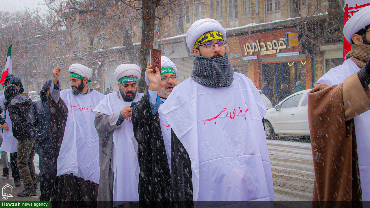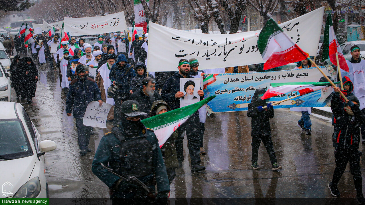 راهپیمایی طلاب، روحانیون همدان صبح امروز، جمعه سوم بهمن‌ماه، در حمایت از قرآن کریم و مقام ولایت و رهبری، از مدرسه علمیه زنگنه آغاز و با حضور در مسیر خیابان شریعتی برگزار شد. شرکت‌کنندگان با در دست داشتن قرآن و تصویر مقام معظم رهبری، بر وفاداری خود به آرمان‌های انقلاب اسلامی تأکید کردند.