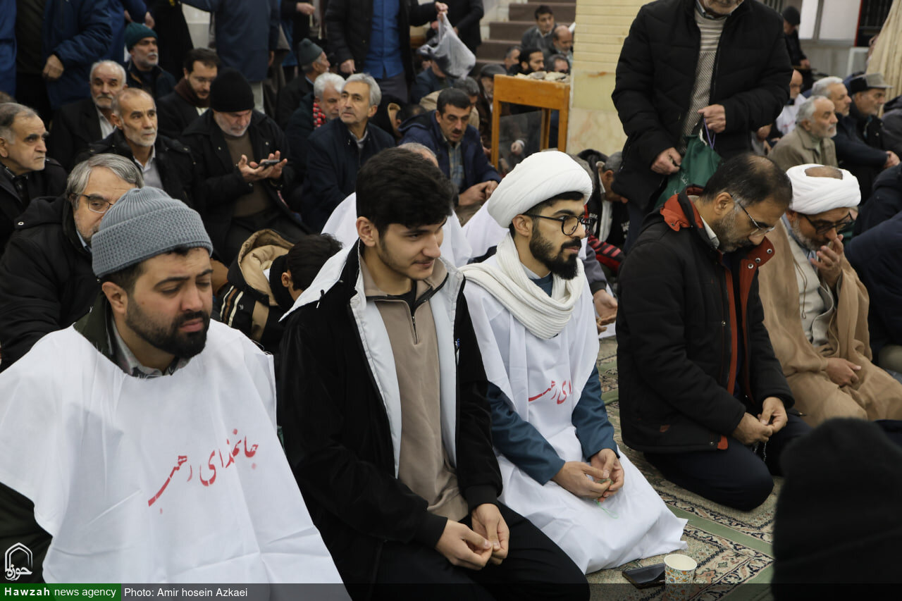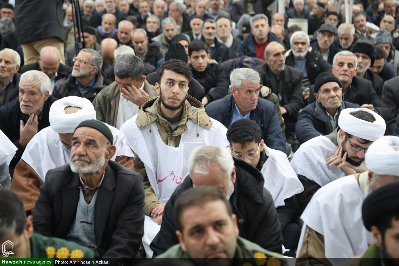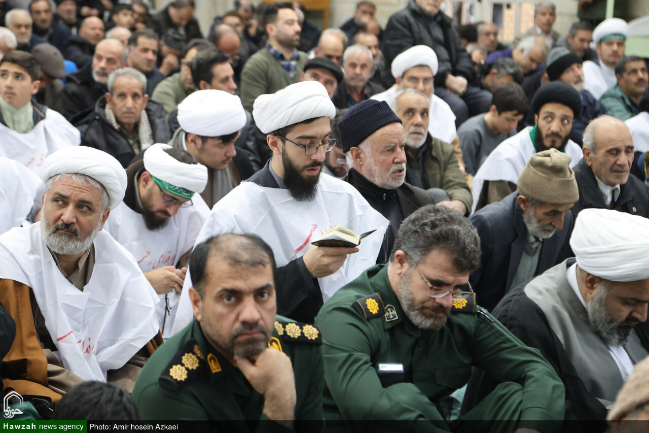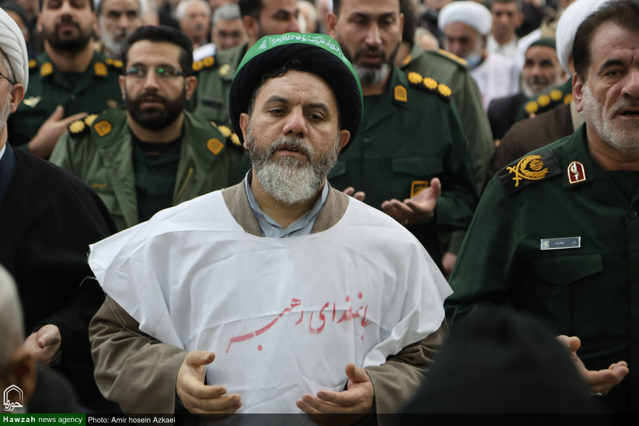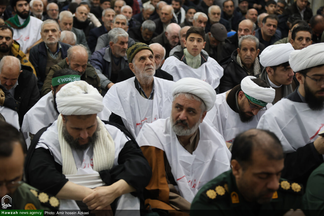 حوزه / طلاب همدانی امروز به صورت کفن پوش در صفوف نمازجمعه همدان حاضر و حمایت خود را از فرامین رهبر معظم انقلاب و پاسخ کوبنده به تهدید و یاوهگویی ترامپ را اعلام کردند.