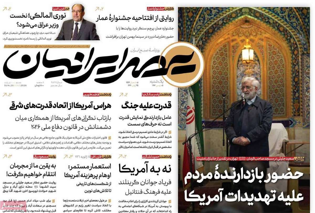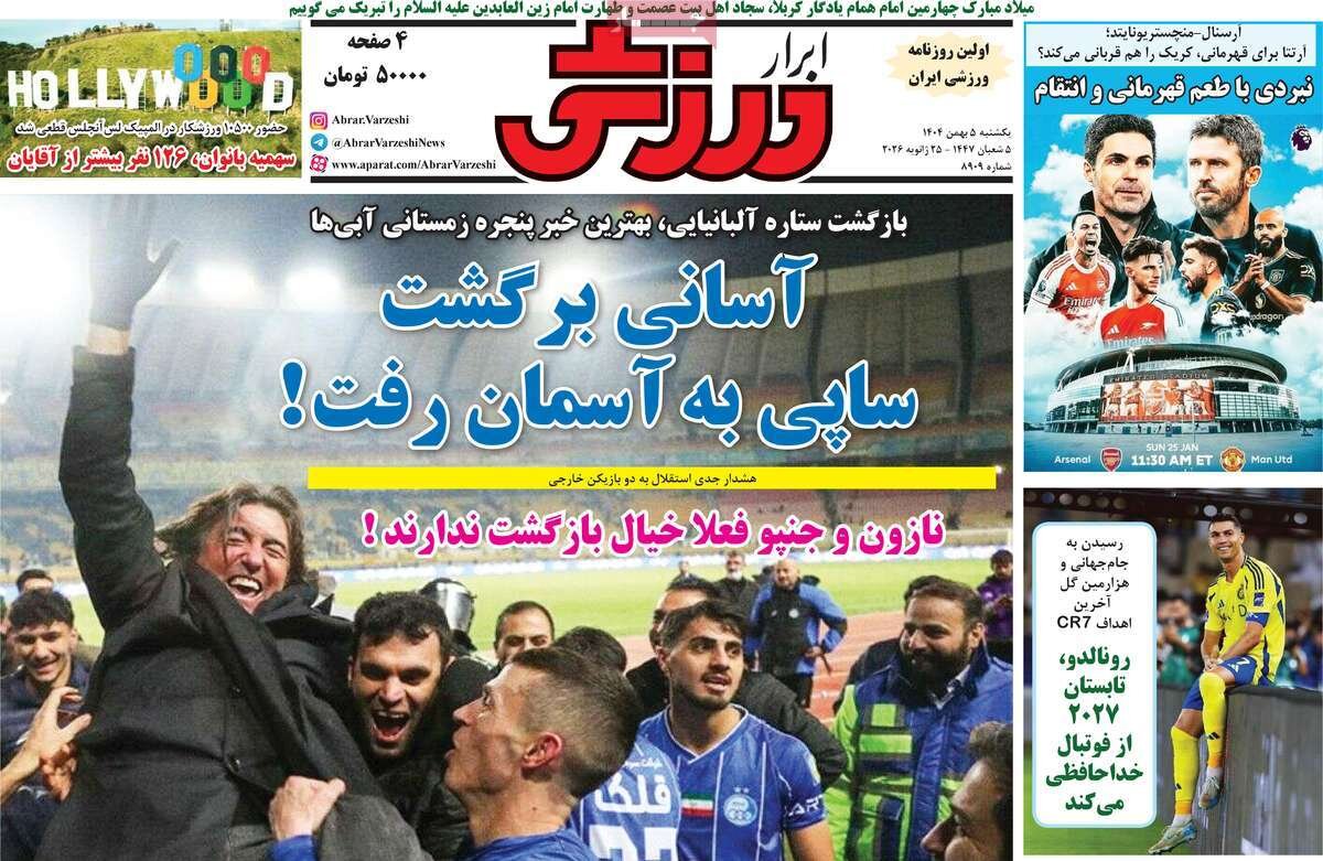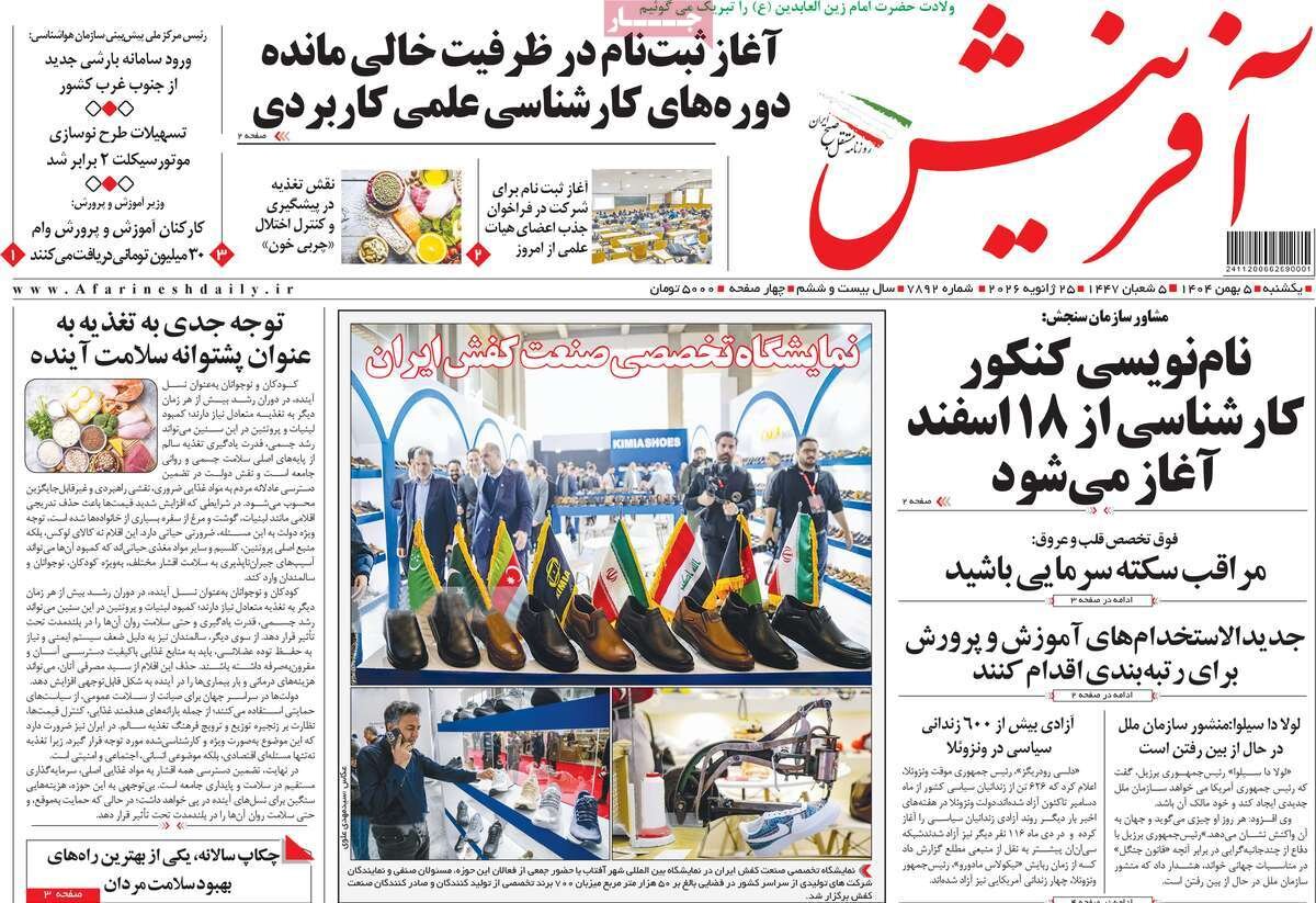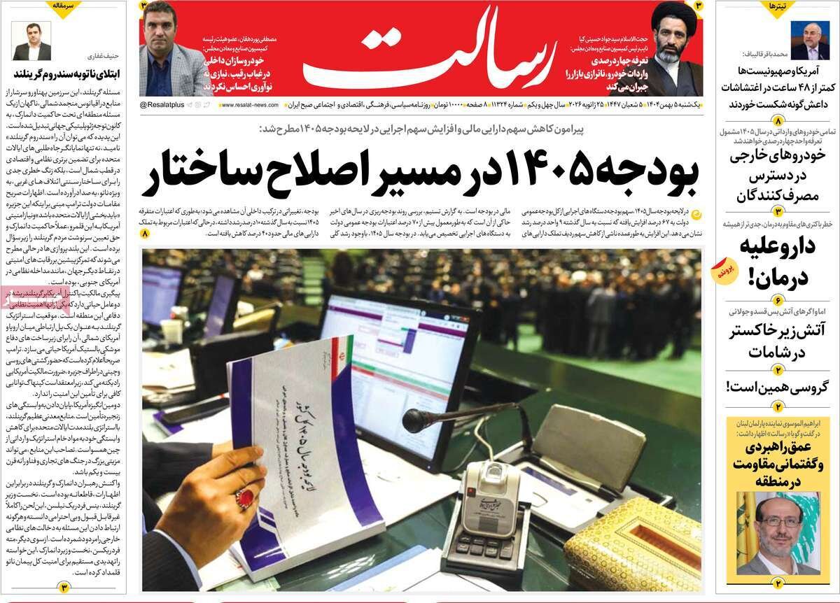 تعدادی از صفحات اول روزنامه‌های یکشنبه ۰۵ بهمن ماه تقدیم مخاطبان ارجمند می شود.