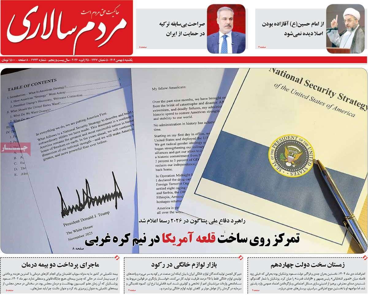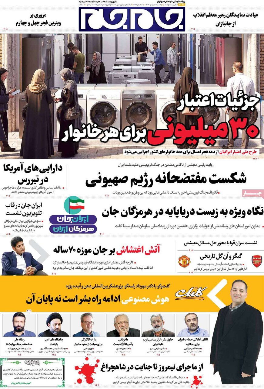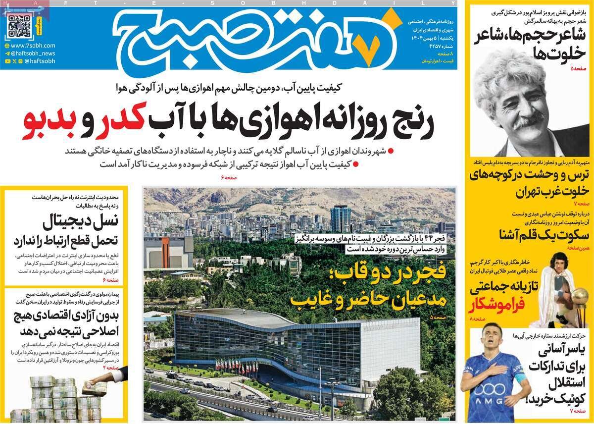 تعدادی از صفحات اول روزنامه‌های یکشنبه ۰۵ بهمن ماه تقدیم مخاطبان ارجمند می شود.