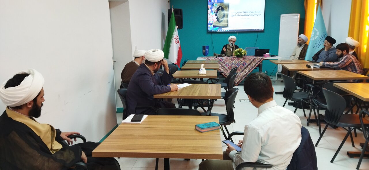 حوزه/ نشست مدیران دارالقرآن مدارس علمیه مرکز مدیریت حوزه علمیه استان تهران، امروز هفتم بهمن ماه با حضور حجت الاسلام والمسلمین سیدوهاب حسینی، معاون تهذیب حوزه علمیه استان تهران، حجت الاسلام والمسلمین حسین اسکندری، تولیت مدرسه علمیه دارالسلام تهران و حجت الاسلام والمسلمین زهرایی، مدیرکل تبلیغات اسلامی تهران، در سالن جلسات تبلیغات شهر تهران برگزار شد.