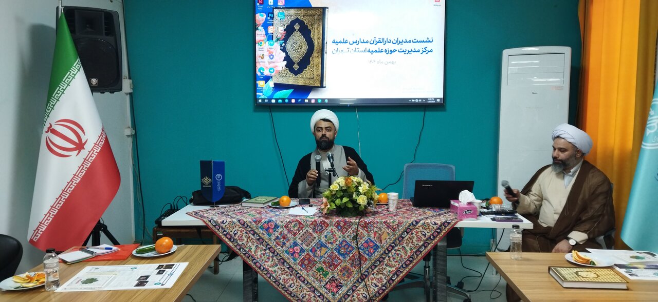 حوزه/ نوبت عصر و پایانی نشست مدیران دارالقرآن های مدارس علمیه مرکز مدیریت حوزه علمیه استان تهران، امروز هفتم بهمن ماه با حضور حجت الاسلام والمسلمین محمدهادی رحیمی صادق مدیر حوزه علمیه استان تهران، حجت الاسلام والمسلمین زهرایی مدیر تبلیغات اسلامی شهر تهران و حجت الاسلام والمسلمین عباس صبوحی پژوهشگر قرآن در سالن جلسات تبلیغات شهر تهران برگزار شد. کتاب قرآن که در مسجد جعفری تهران توسط اغتشاشگران آمریکایی صهیونسیتی آتش زده شد در حاشیه این مراسم به نمایش درآمد.
