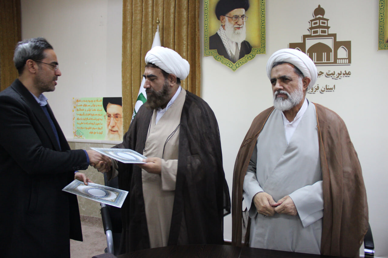 حوزه / انعقاد تفاهم نامه بین حوزه علمیه استان قزوین با ستاد اجرایی فرمان حضرت امام خمینی ومرکز خدمات حوزه علمیه قزوین با حضور حجت الاسلام مهدی رجایی نیا، مسئول مرکز ارتباطات حوزه و نظام حوزه های علمیه و حجت الاسلام مهدی پناهی، مدیر ارتباط با سازمان ها ونهادهای حاکمیتی حوزه های علمیه کشور و حجت الاسلام والملسمین اصغر عرفانی، مدیر حوزه علمیه استان قزوین برگزار شد