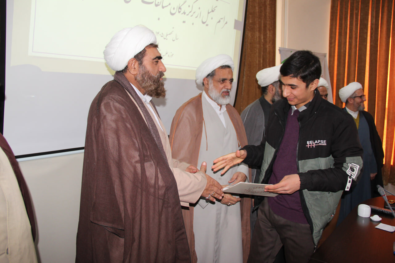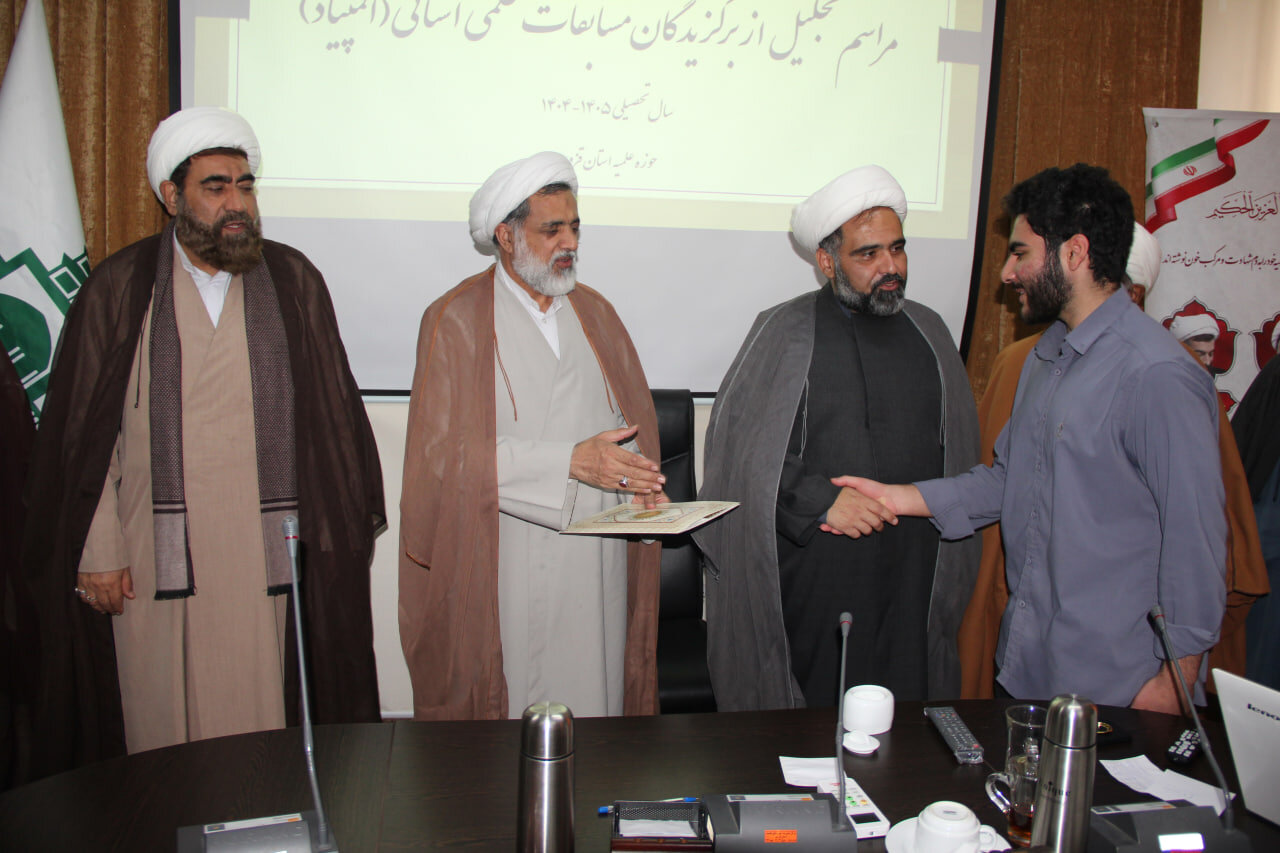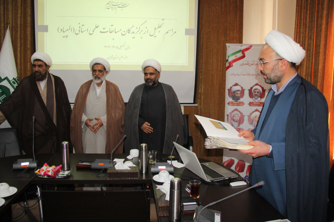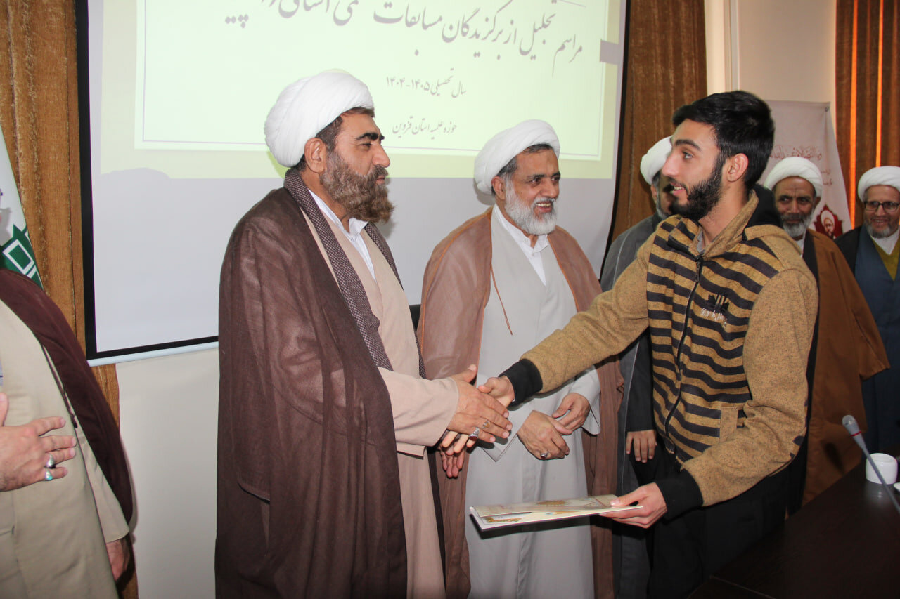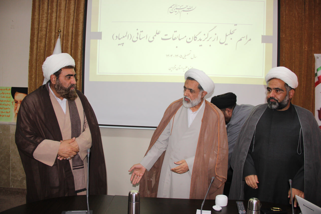حوزه / مراسم تجلیل از برگزیدگان مسابقات علمی استانی طلاب حوزه علمیه قزوین با حضور حجت الاسلام مهدی رجایی نیا، مسئول مرکز ارتباطات حوزه و نظام حوزه های علمیه و حجت الاسلام مهدی پناهی، مدیر ارتباط با سازمان ها ونهادهای حاکمیتی حوزه های علمیه کشور و حجت الاسلام والملسمین اصغر عرفانی، مدیر حوزه علمیه استان قزوین برگزار شد