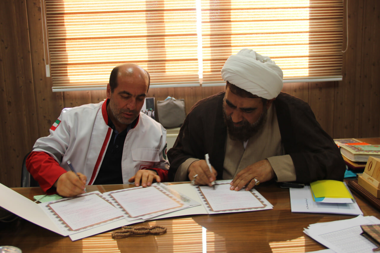 حوزه / / انعقاد تفاهم نامه بین حوزه علمیه قزوین و سازمان جمعیت هلال احمر استان قزوین با حضور حجت الاسلام مهدی رجایی نیا، مسئول مرکز ارتباطات حوزه و نظام حوزه های علمیه و حجت الاسلام مهدی پناهی، مسئول ارتباط با سازمان ها ونهادهای حاکمیتی حوزه های علمیه کشور و حجت الاسلام والملسمین اصغر عرفانی، مدیر حوزه علمیه استان قزوین برگزار شد
