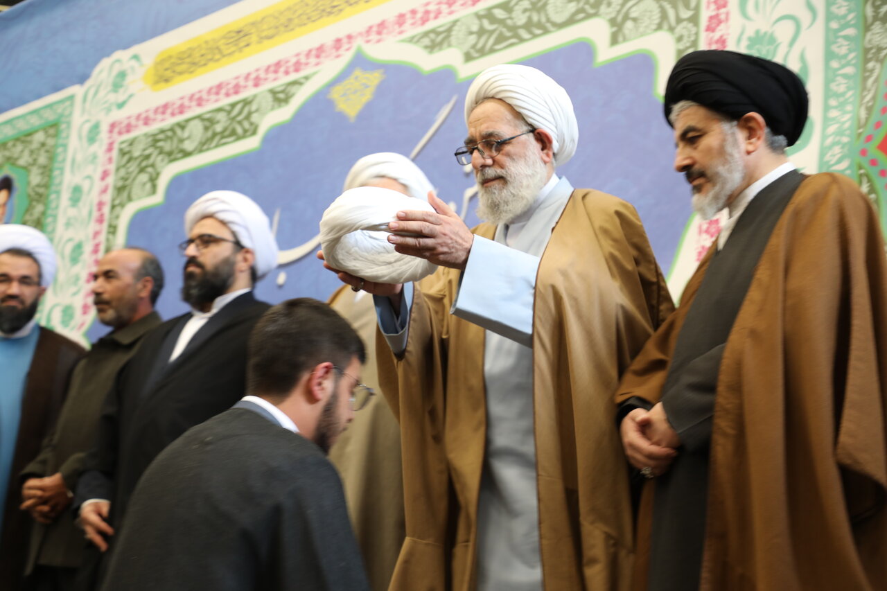 آیین عمامه گذاری جمعی از طلاب حوزه علمیه ارومیه توسط حجت الاسلام والمسلمین "سید مهدی قریشی" نماینده ولی فقیه در آذربایجان غربی و حجت الاسلام والمسلمین "احمد فرخ فال" مسئول دبیرخانه شورای عالی حوزههای علمیه کشور برگزار شد.
