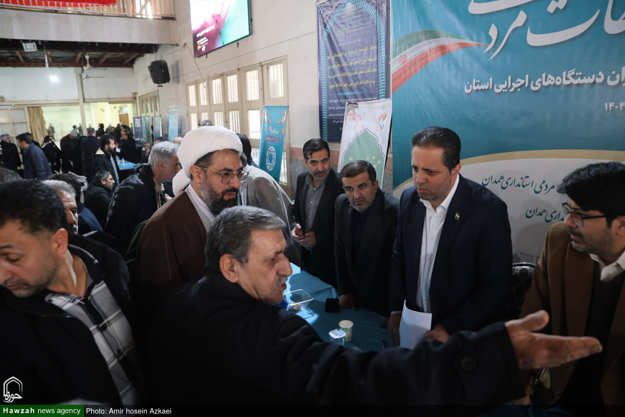 حوزه/ همزمان با گرامیداشت دهه مبارک فجر، برنامه میز ارتباطات مردمی با حضور معاونین استاندار و مدیران دستگاههای اجرایی استان در حسینیه امام خمینی (ره) همدان برگزار شد.