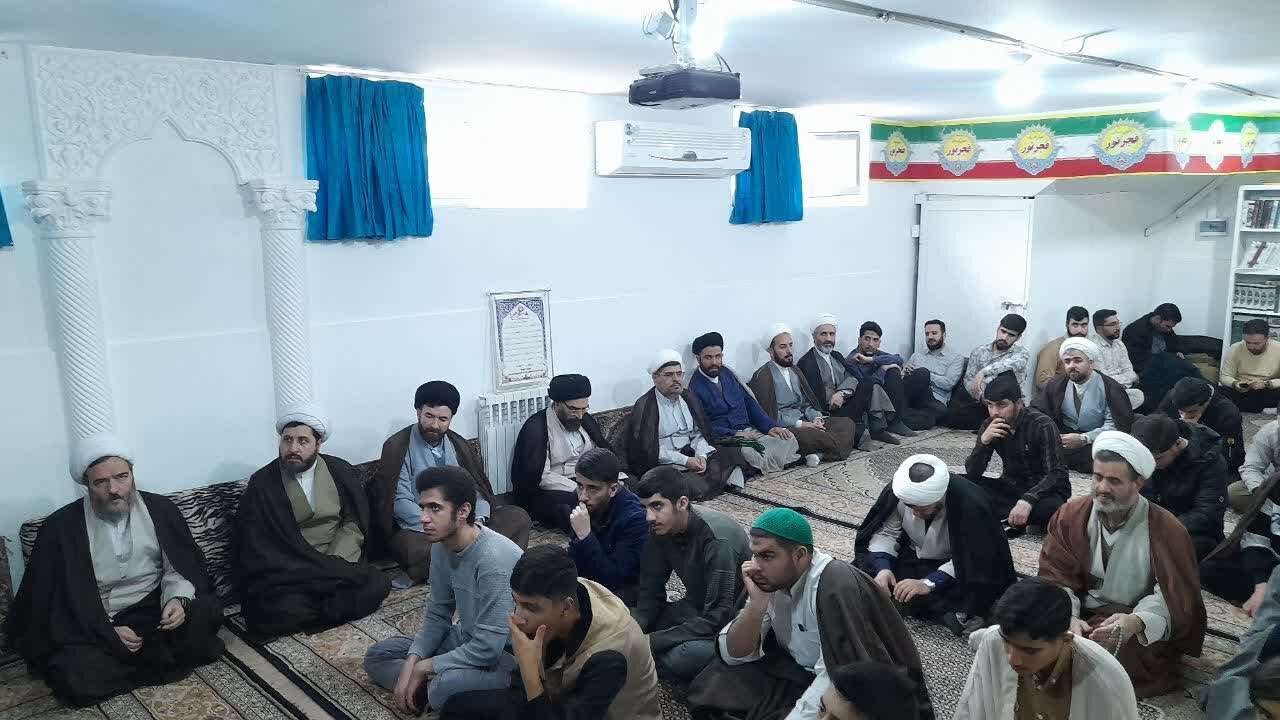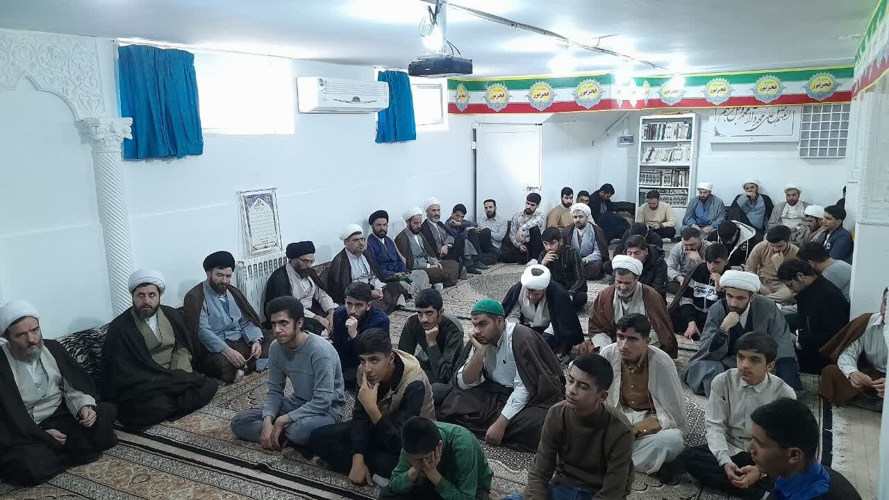 درس اخلاق هفتگی به مناسبت دهه فجر، با سخنرانی آیت الله موسوی اصفهانی؛ مدیر حوزه علمیه استان همدان و با حضور امام جمعه شهرستان، اساتید و طلاب در نماز خانه مدرسه علمیه امام صادق علیه‌السلام بیجار برگزار شد.