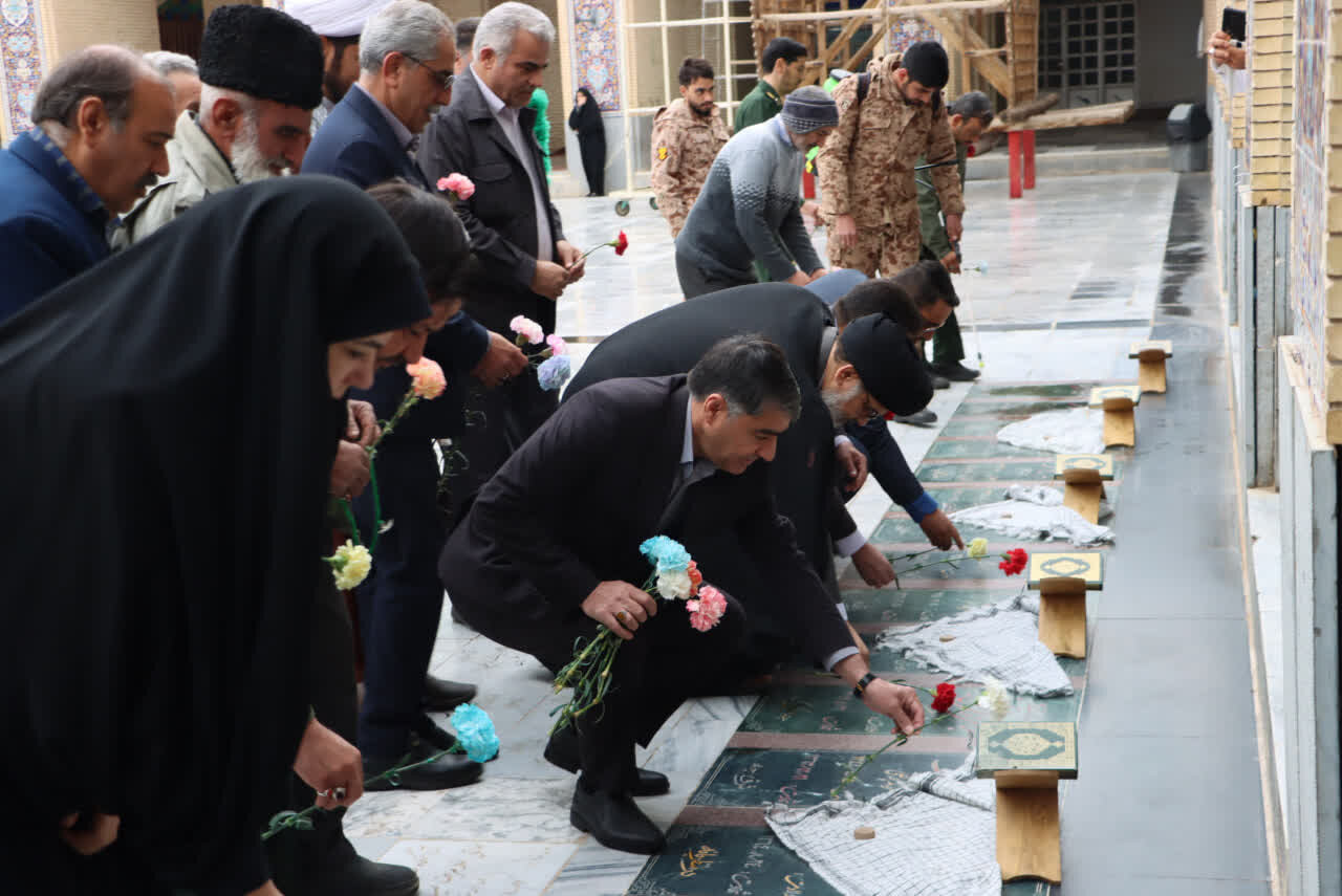 حوزه/ به مناسبت ایام دهه فجر انقلاب اسلامی، مراسم گلباران و عطرافشانی گلزار مطهر شهدا در یزد همزمان با سراسر کشور برگزار شد.