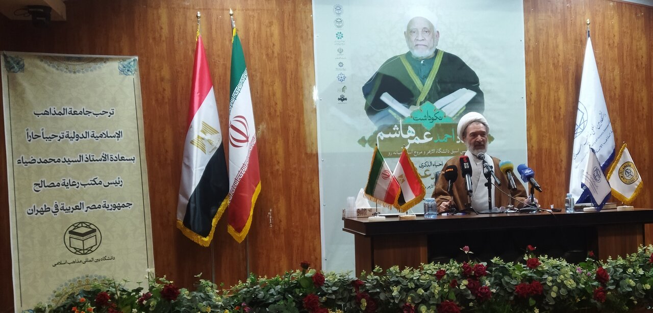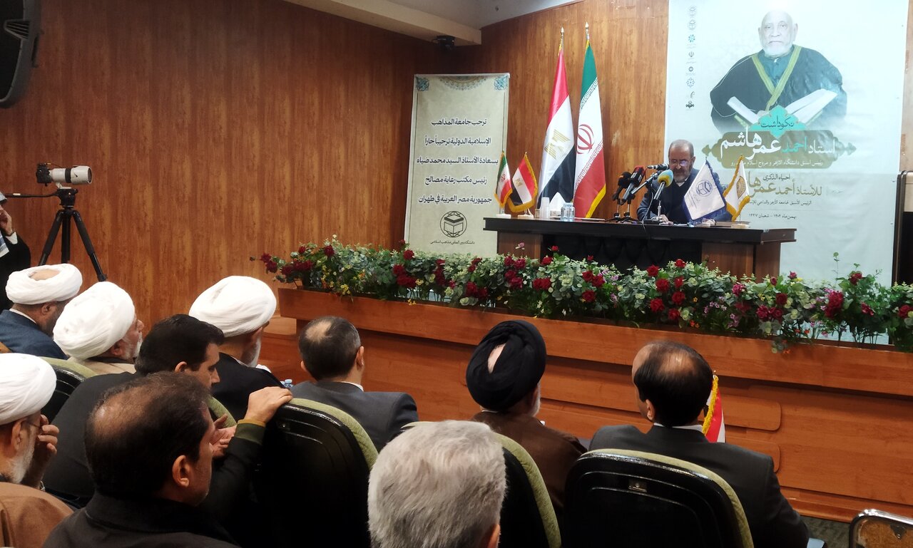 حوزه/ مراسم نکوداشت استاد احمد عمر هاشم، رئیس اسبق دانشگاه الازهر با سخنرانی محمد ضیاء رئیس دفتر حفاظت منافع مصر در تهران، محمدهادی فلاح زاده، رئیس دانشگاه بین المللی مذاهب اسلامی و حجت الاسلام والمسلمین احمد مبلغی، عضو مجلس خبرگان رهبری، امروز ۱۹ بهمن در سالن شهید ماموستا شیخ الاسلام دانشگاه بین المللی مذاهب اسلامی برگزار شد.