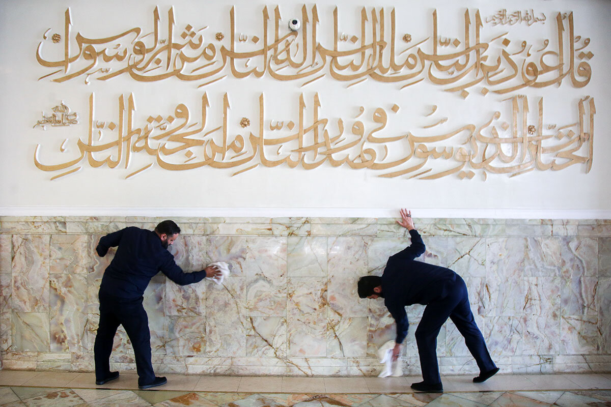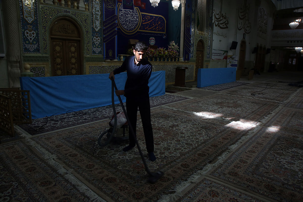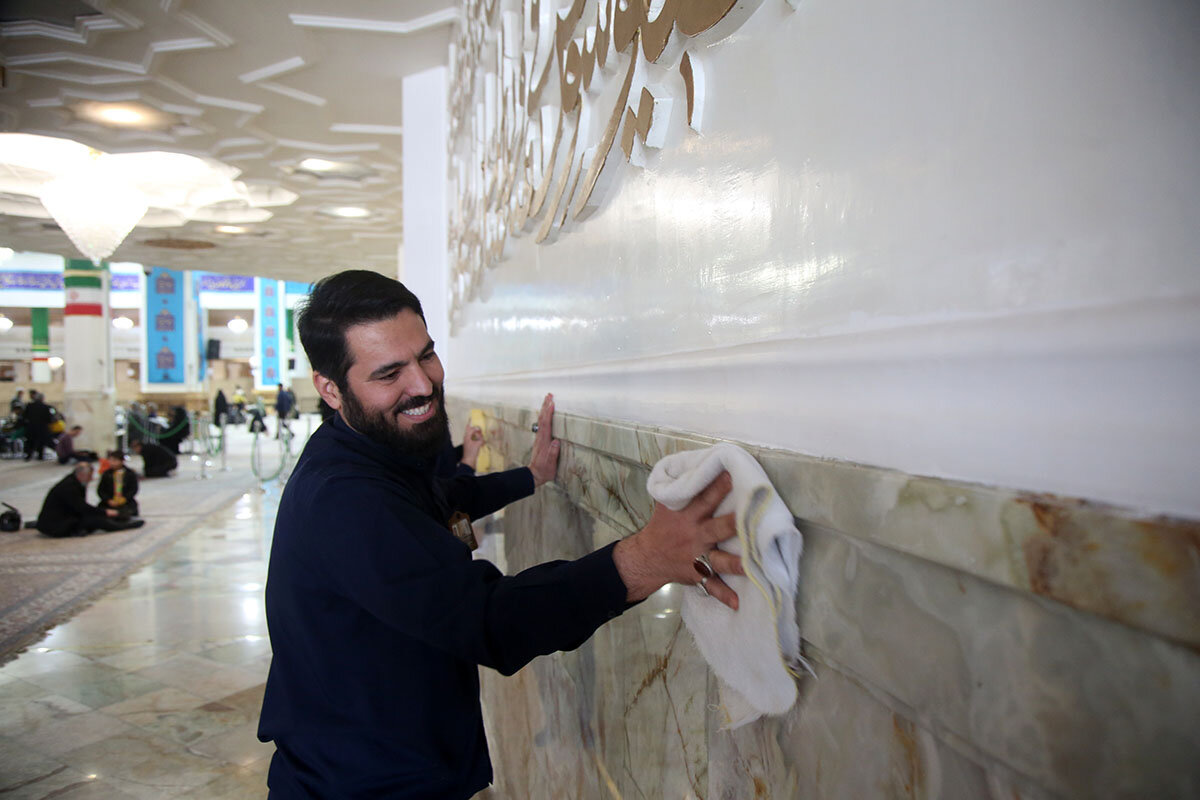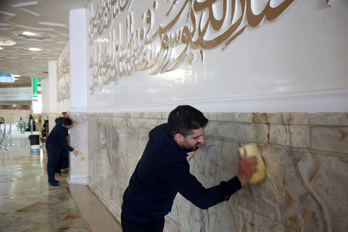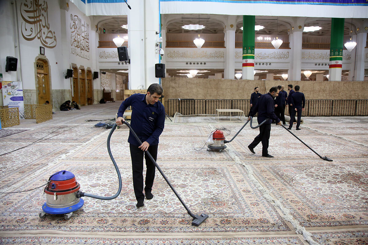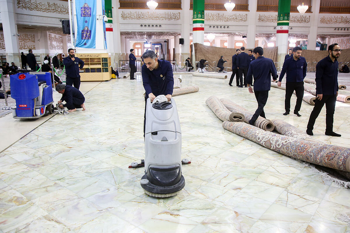 شبستانهای حرم مطهر حضرت فاطمه معصومه سلام الله علیها در آستانه ماه مبارک رمضان توسط خادمان بخش خدمات اماکن حرم مطهر غبارروبی و نظافت شد.
