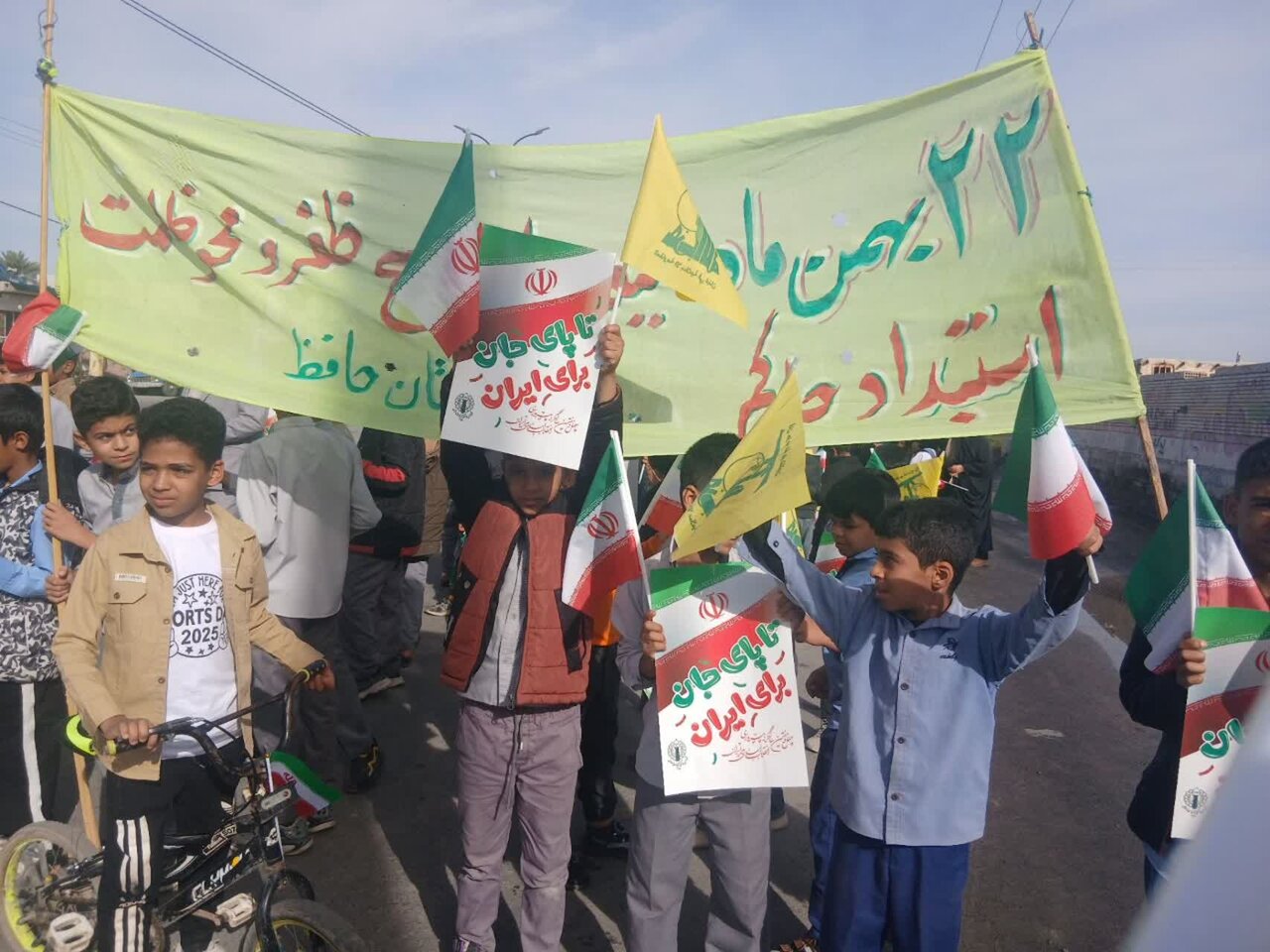 حضور حماسی و پر شور دانش آموزان مدارس شهر علی آباد عمران به همراه کادر آموزشی و تربیتی در راهپیمایی ۲۲بهمن ۱۴۰۴