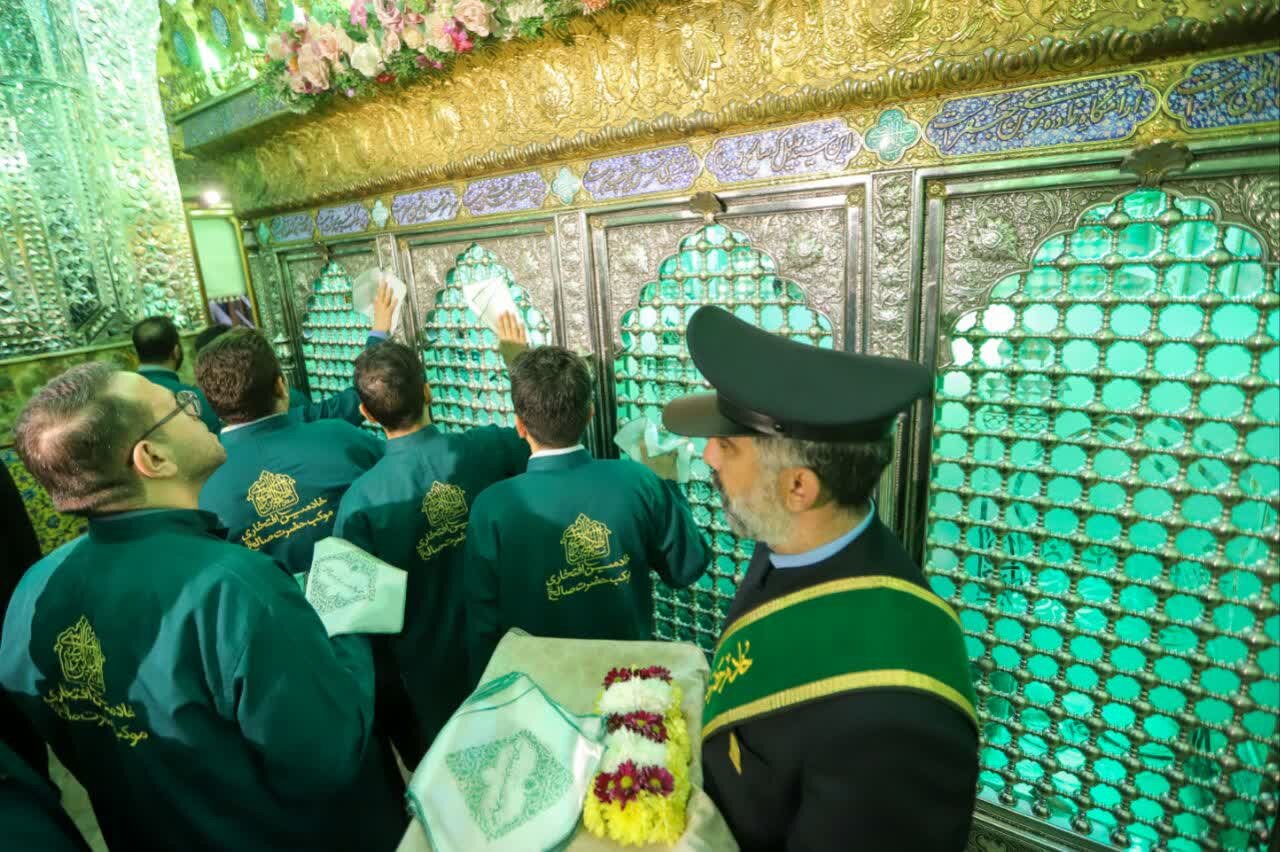 آیین غبارروبی از مضجع شریف و نورانی حضرت صالح بن موسی الکاظم(ع) با حضور مردم شریف و جمعی از خادمین برگزار شد.
