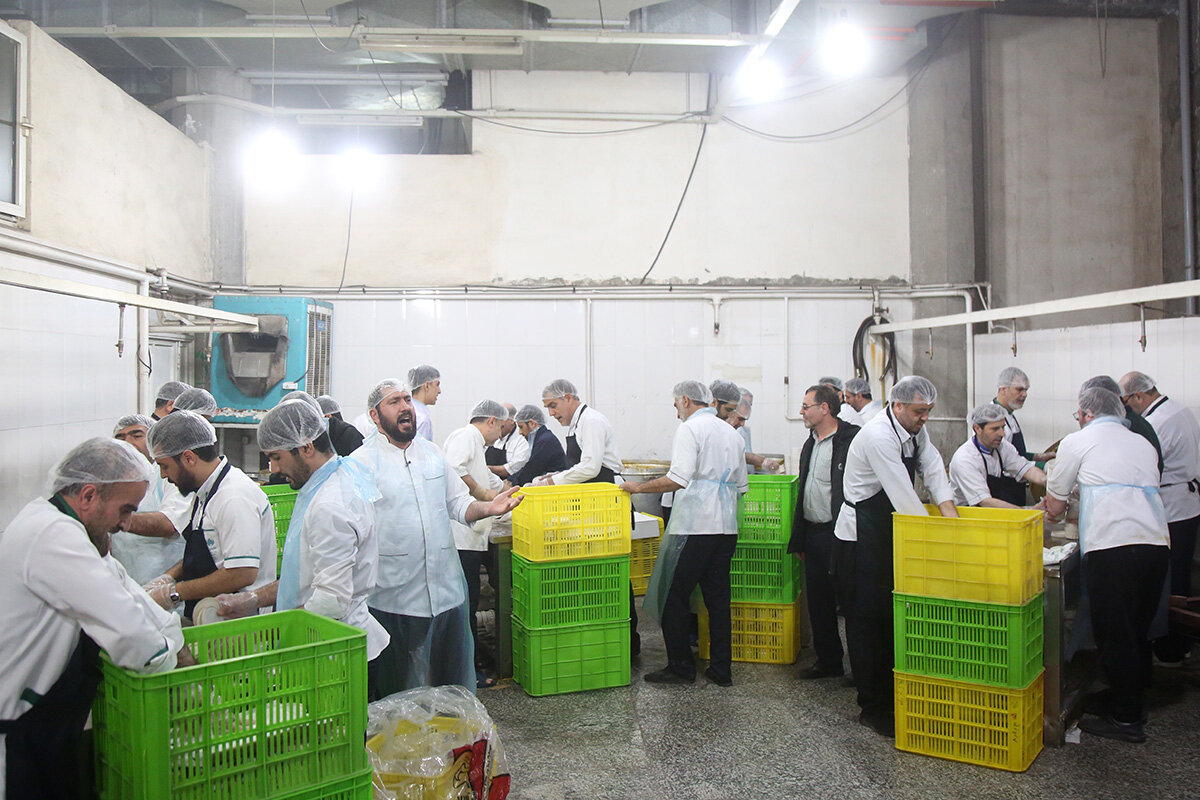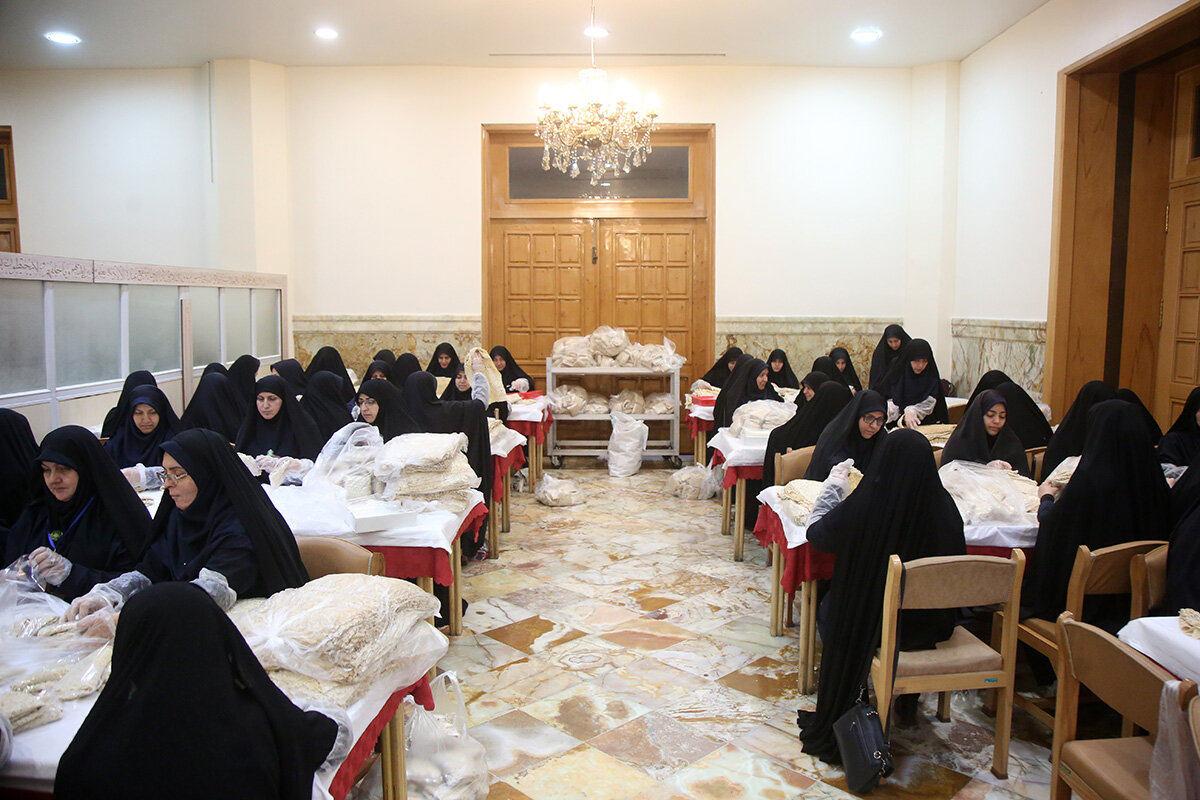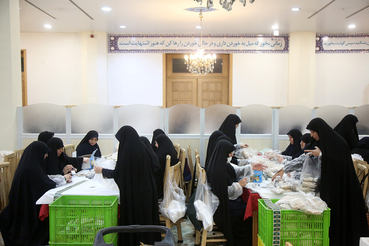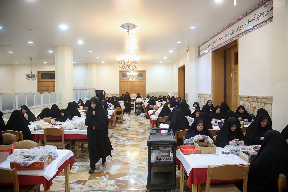 بسته بندی افطاری ساده حرم مطهر حضرت فاطمه معصومه سلام الله علیها هر روز توسط بیش از 200 خادم خواهر و برادر در مهمانسرای حضرتی حرم مطهر انجام می شود.