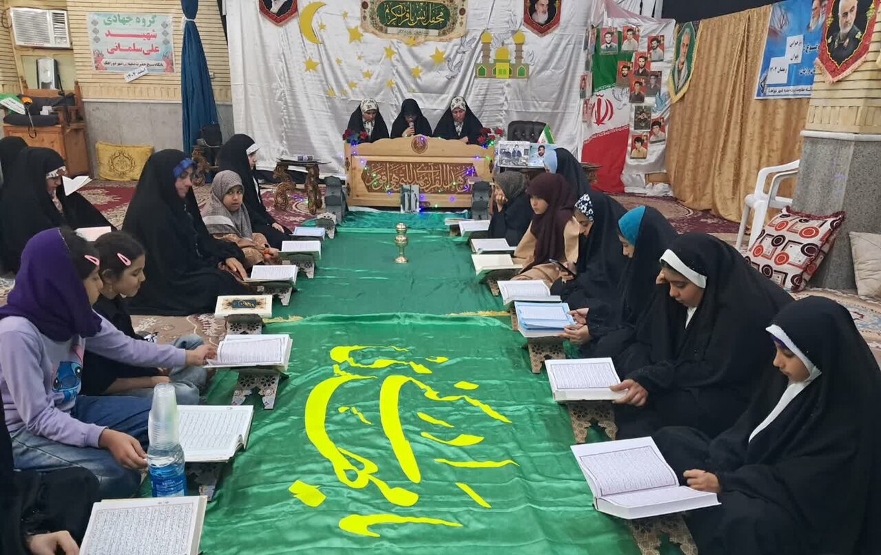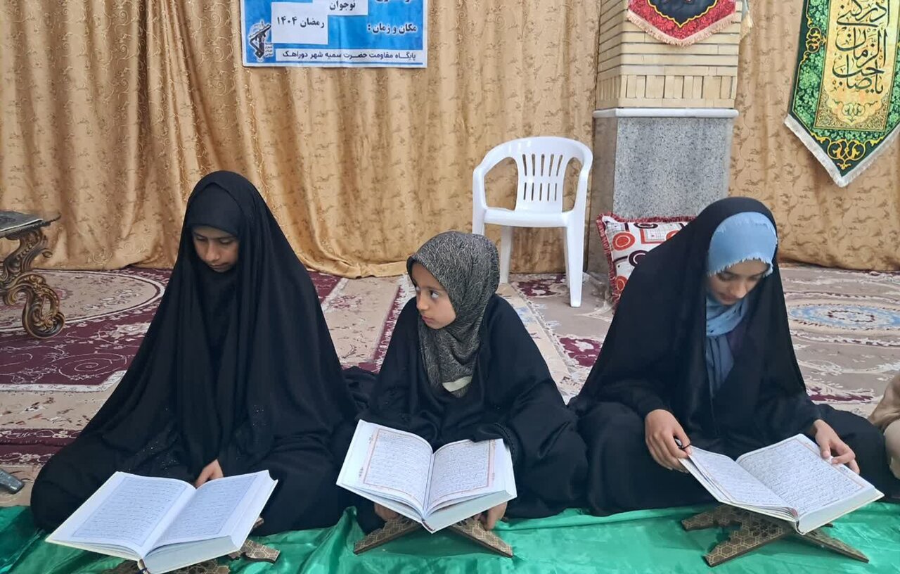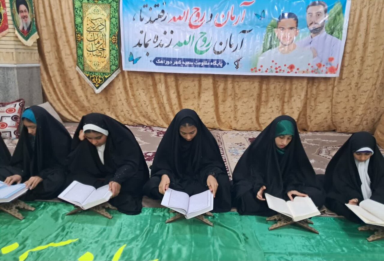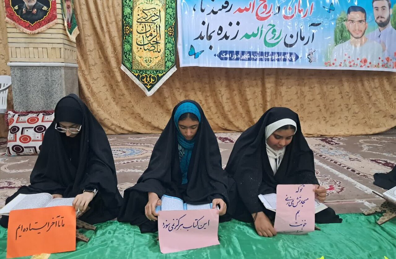 حوزه/ سومین شب محفل ترتیل خوانی قرآن کریم در ماه مبارک رمضان ویژه دختران نوجوان به همت واحد امور قرآنی پایگاه بسیج خواهران سمیه در حسینیه اباالفضل العباس علیه السلام شهر دوراهک برگزار شد.