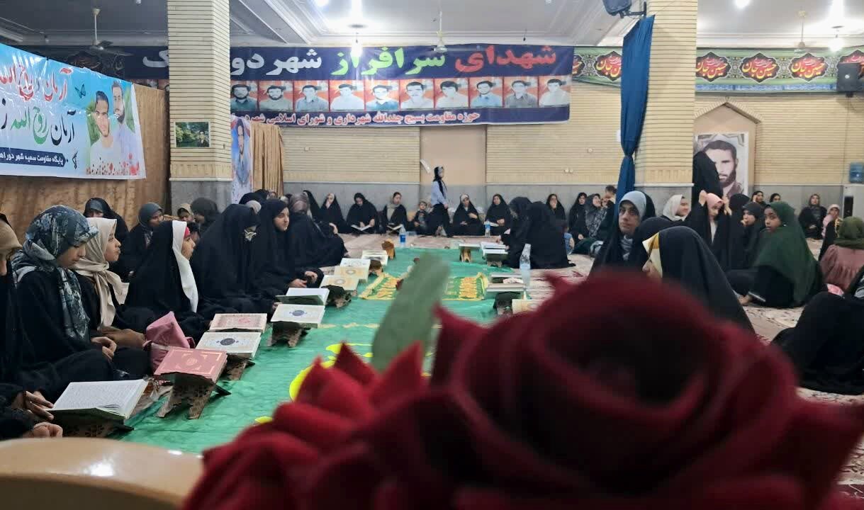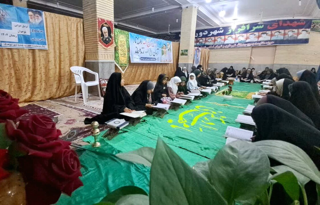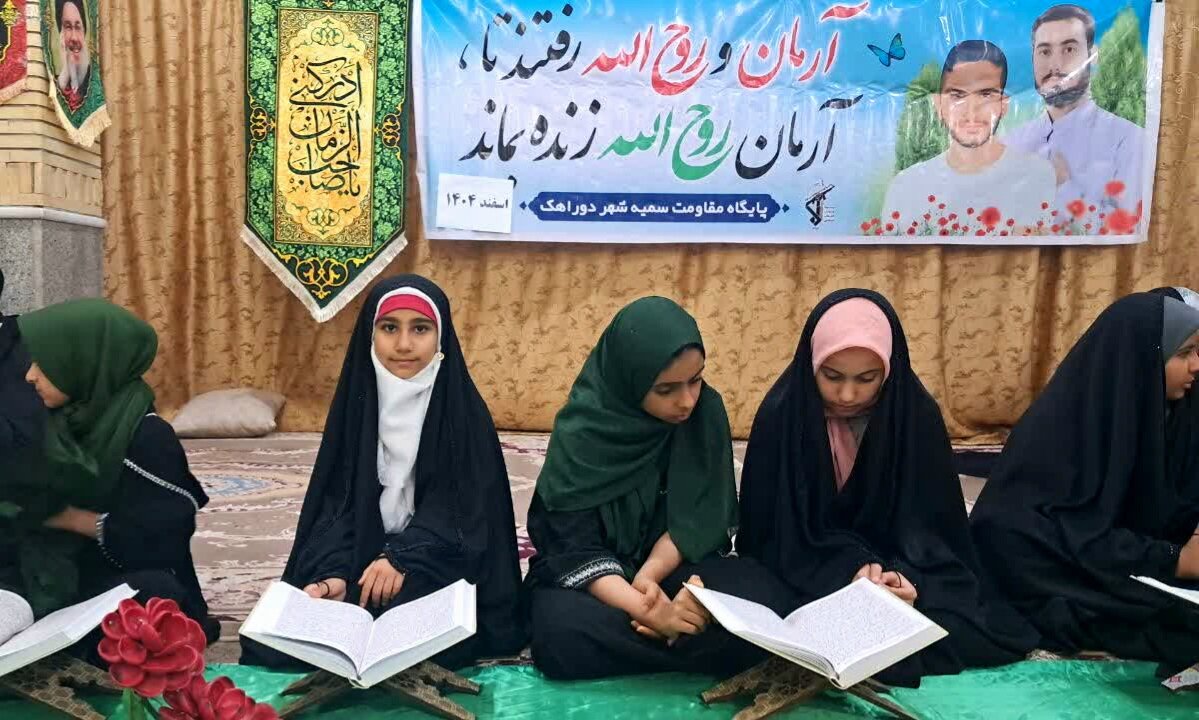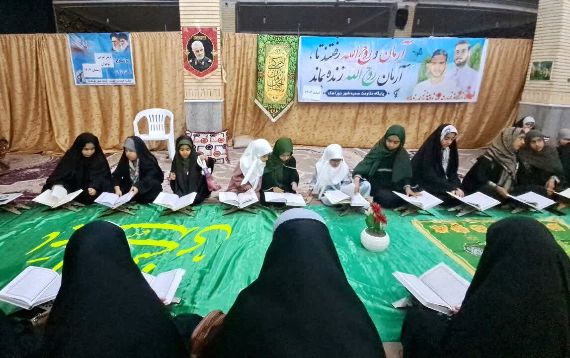 حوزه/ مراسم جزءخوانی قرآن کریم ویژه دختران نوجوان به همت واحد امور قرآنی پایگاه بسیج خواهران سمیه شهر دوراهک همزمان با هشتمین شب ماه مبارک رمضان در حسینیه حضرت اباالفضل العباس علیه السلام این شهر برگزار شد.